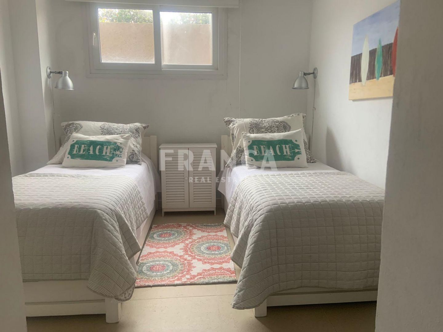 A solo metros del mar, en una de las ubicaciones más codiciadas de Manantiales, se encuentra este departamento en el edificio Palcos de Manantiales, a pocos pasos de la icónica Playa Bikini.Ubicado en un segundo piso, el apartamento cuenta con 2 dormitorios principales, totalmente equipados, y una amplia terraza con parrillero privado, desde donde se disfrutan lindas vistas al mar. Ideal para relajarse y disfrutar de momentos al aire libre.Además, dispone de un dormitorio de servicio con baño, ubicado de forma independiente, que puede funcionar perfectamente como un tercer dormitorio, sumando flexibilidad a la distribución.El edificio ofrece servicios y amenities de primer nivel: piscina, gimnasio, SUM, servicio de mucama, servicio de playa y portería, brindando todo el confort para unas vacaciones sin preocupaciones.Una excelente opción para quienes buscan comodidad, buena ubicación y calidad de vida en el corazón de Manantiales.