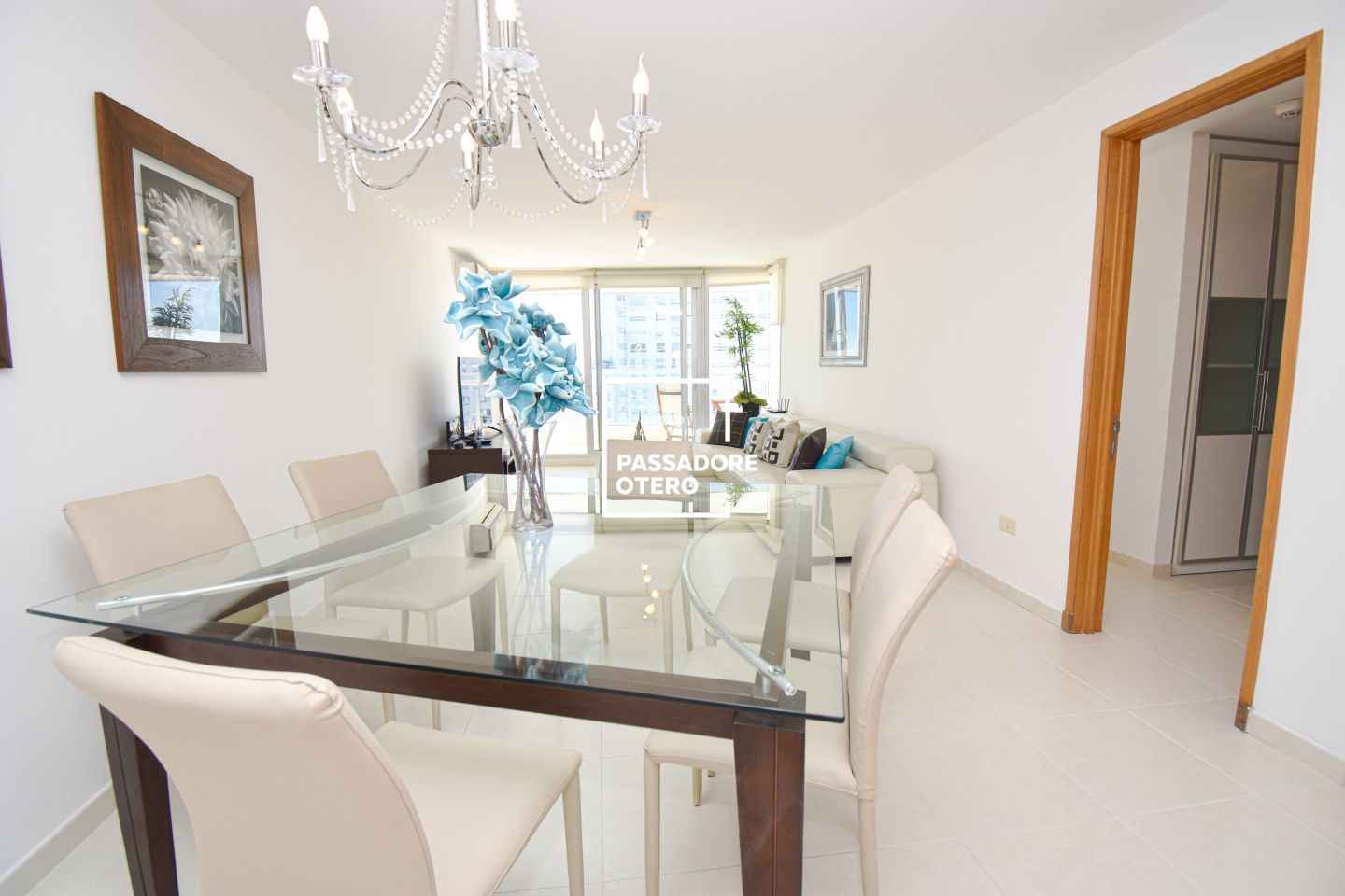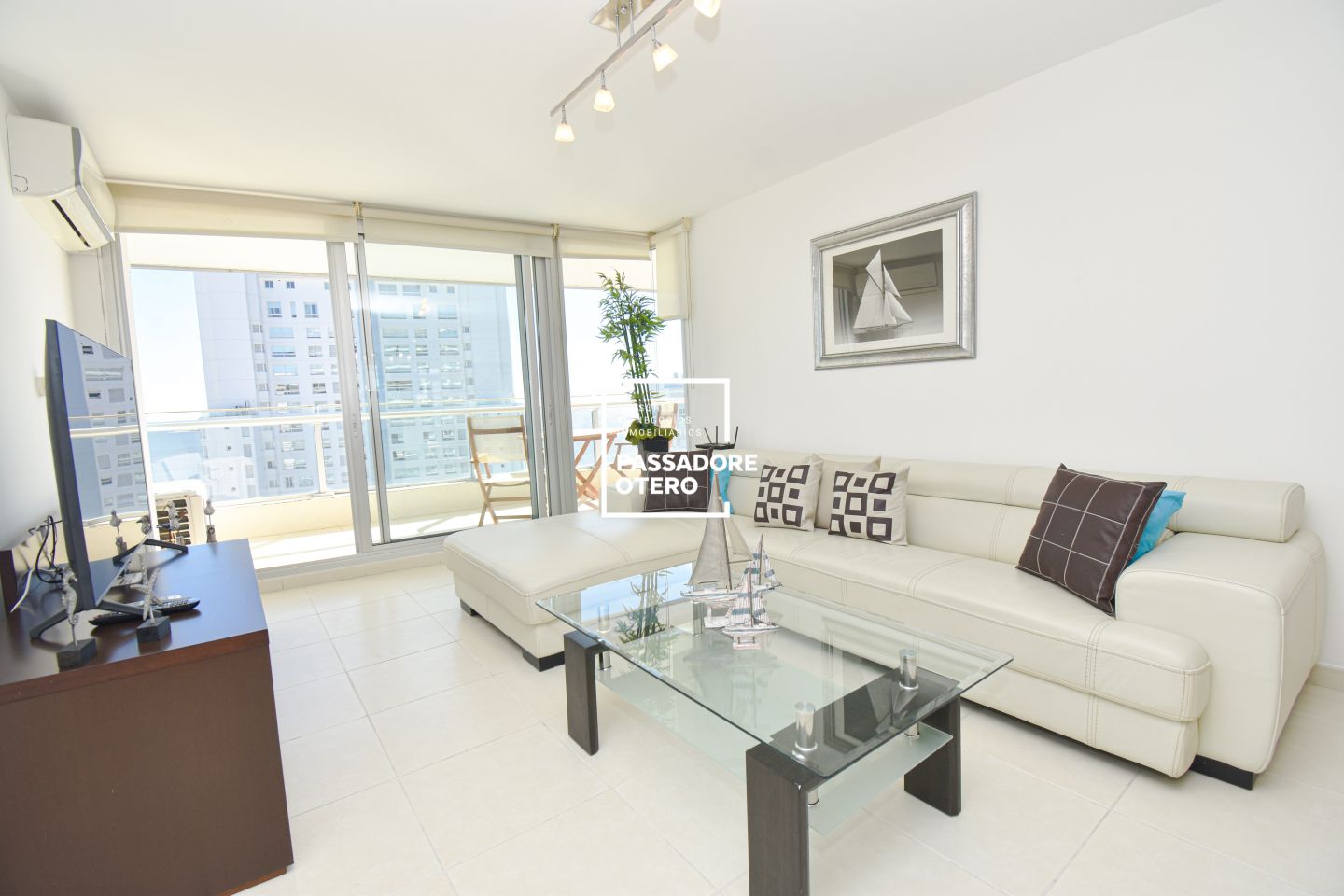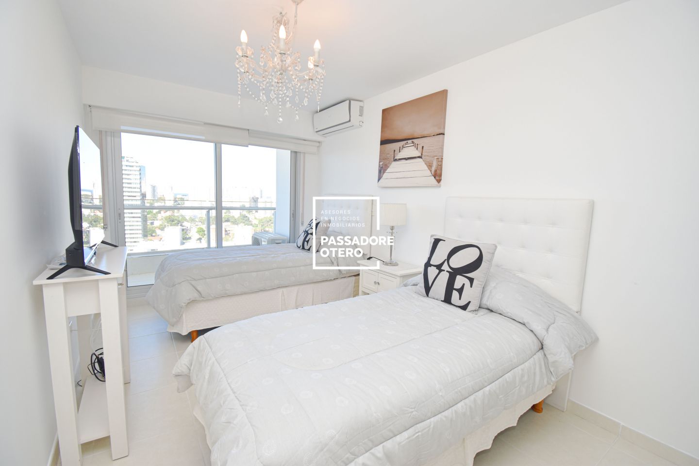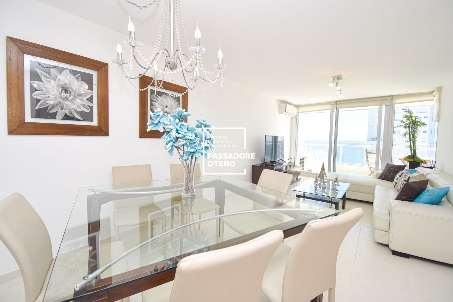 ALQUILER TEMPORADA.En la parada 4 de la Playa Mansa, al lado de Hotel Enjoy, con excelente vista al puerto, a la bahía, a Playa Brava y al bosque. Unidad de dos dormitorios, todos en suite, hidromasaje en suite principal, mas baño social, amplios placares. Espacio living-comedor integrado al balcón terraza con vista panorámica. Una cocina definida con salida a terraza con vista a playa brava. Calefacción por losa radiante y aire acondicionado. El mejor SPA para tus sentidos y pensado para ti, con sauna humedo y seco, hidromasaje, ducha, salas de masajes, de relax, gimnasio, cancha de tenis, piscina cerrada y abierta. Servicio de mucama, servicio de playa, sala de juegos para niños y adolescentes. Se destacan parrilleros de uso comun en ultimo piso con increibles vistas panoramicas!!.Recepcion las 24 horas.Precio publicado corresponde al valor diario en baja ocupación*