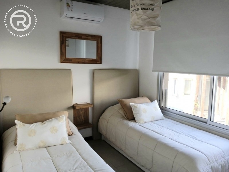 Dispone de living comedor con salida al parrillero, cocina, tres dormitorios, principal en suite. Aire acondicionado en living y dormitorio principal. Servicio de mucama.