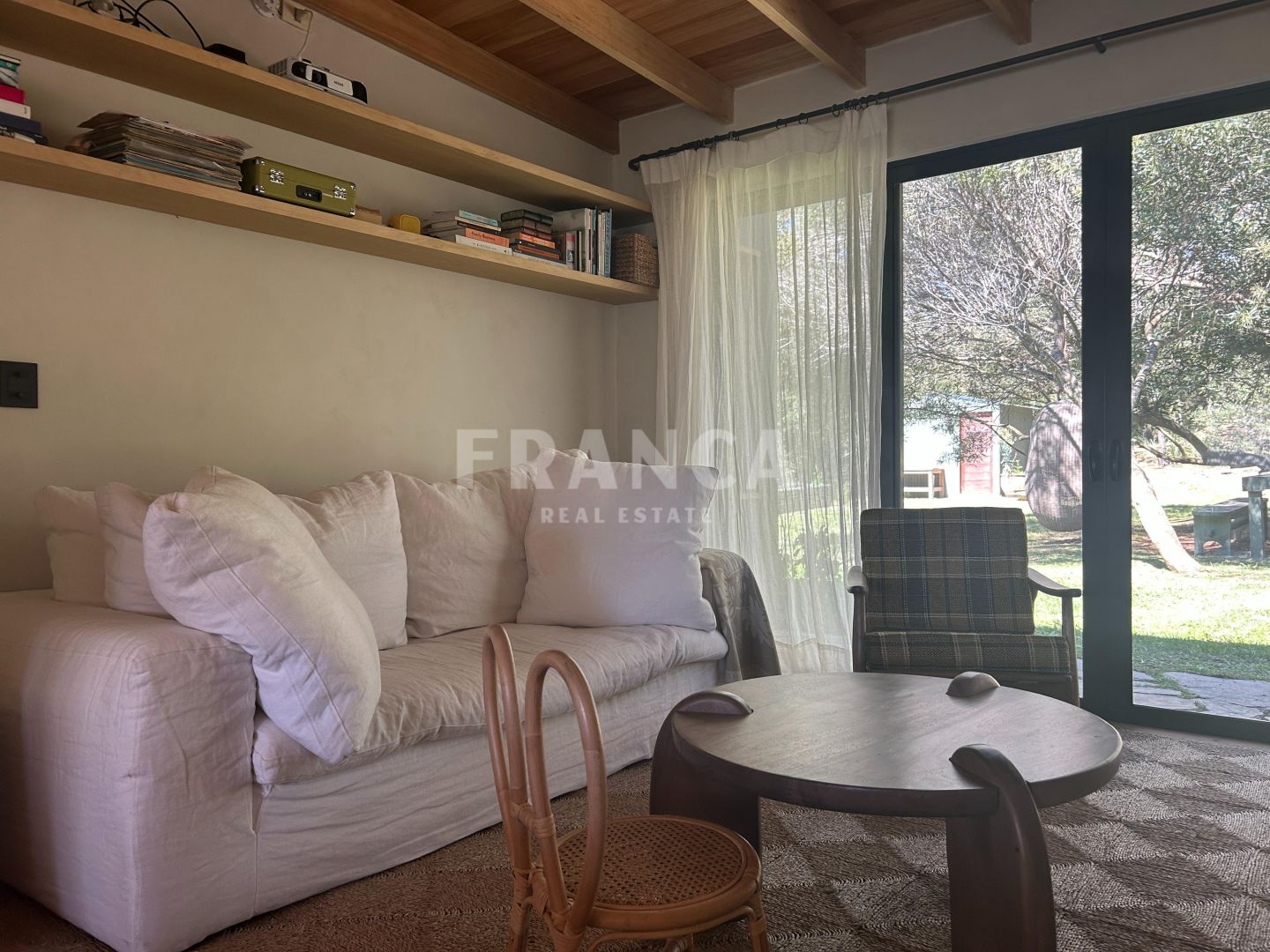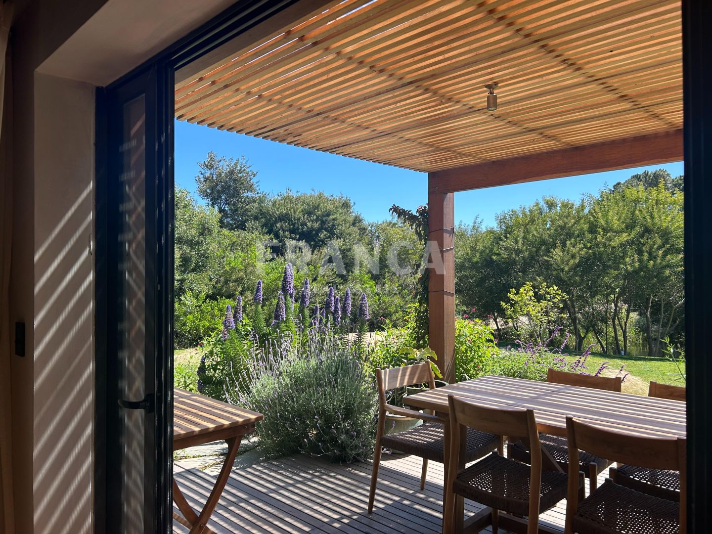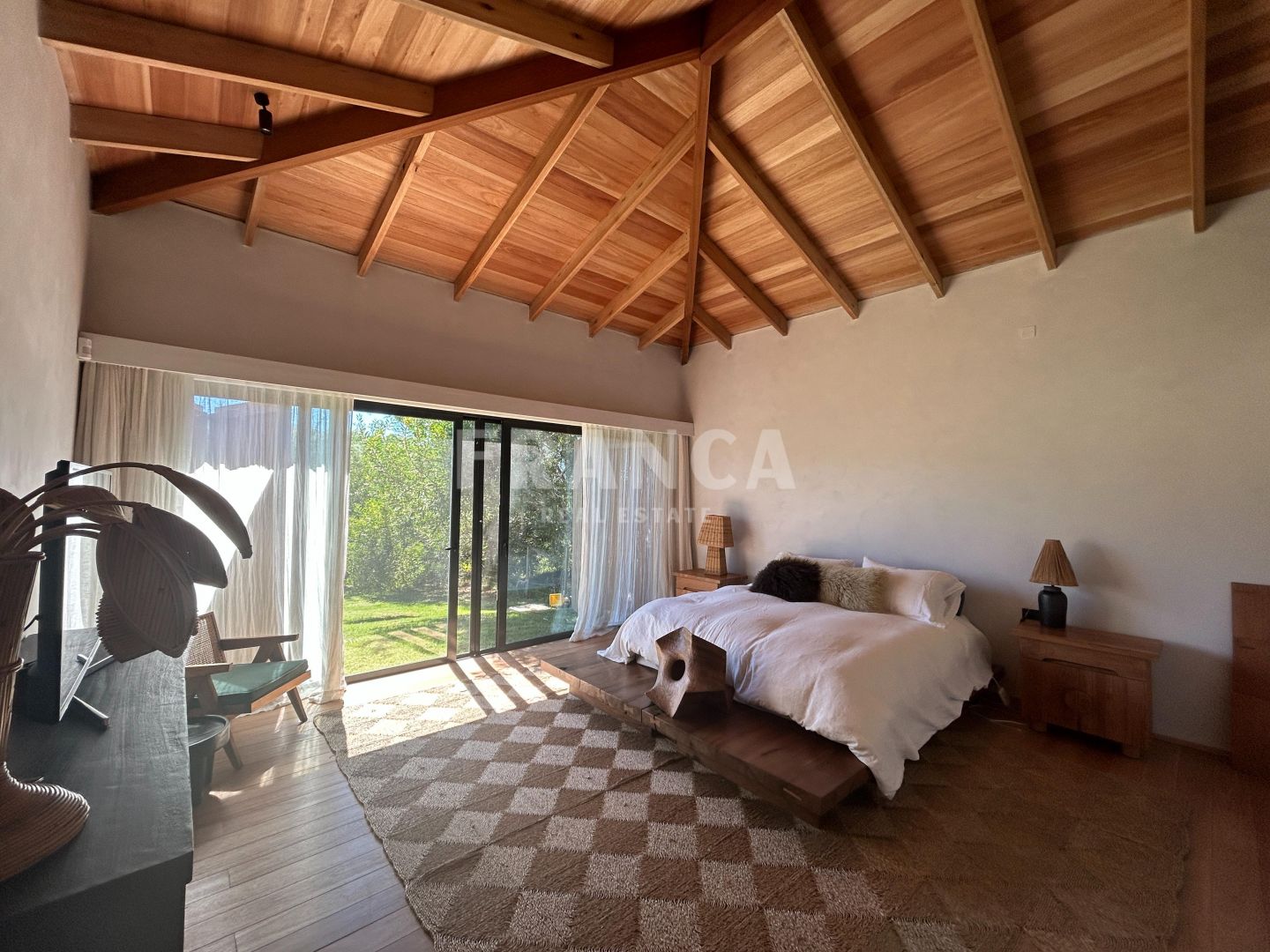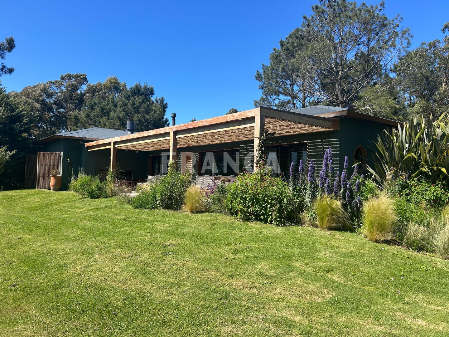 Casa Amapola - Punta PiedrasModerna y luminosa, esta casa de diseño único se encuentra en el exclusivo barrio Mangrullos, a solo 1 km del mar. La propiedad cuenta con 4 dormitorios con baño privado, distribuidos entre el módulo principal y un bungalow exterior, ofreciendo comodidad y privacidad.Sobre un lote de 4.000 m² y con 200 m² construidos, la casa ofrece amplios espacios para disfrutar del entorno: un sector frente al tajamar ideal para bañarse y un área en el bosque para relajarse o compartir momentos al aire libre.Entre sus comodidades, la vivienda incluye pantalla y proyector, perfecta para disfrutar de películas o eventos en familia. Los dormitorios cuentan con aire acondicionado.Una opción única para quienes buscan diseño, naturaleza y cercanía al mar en Punta Piedras.