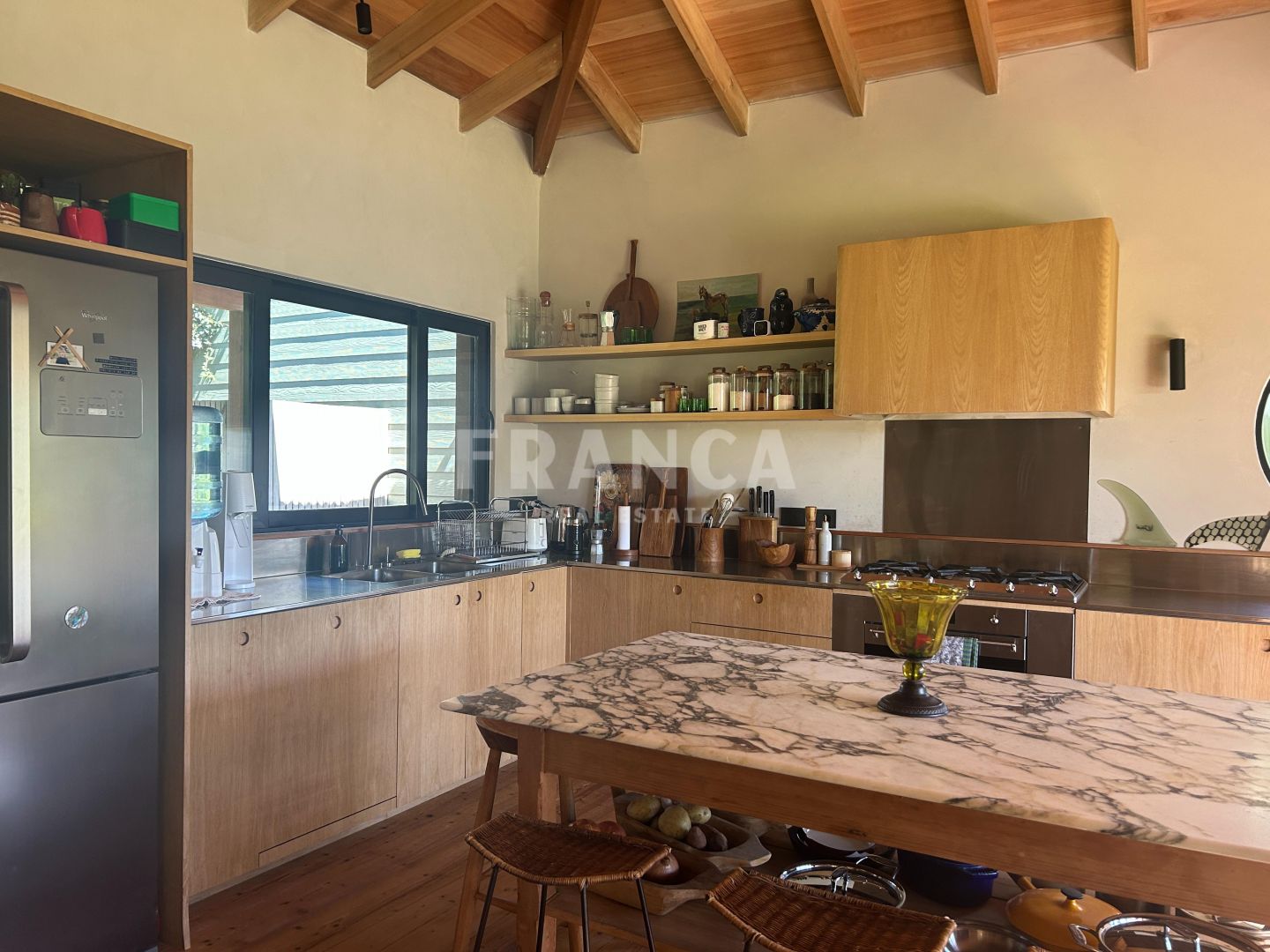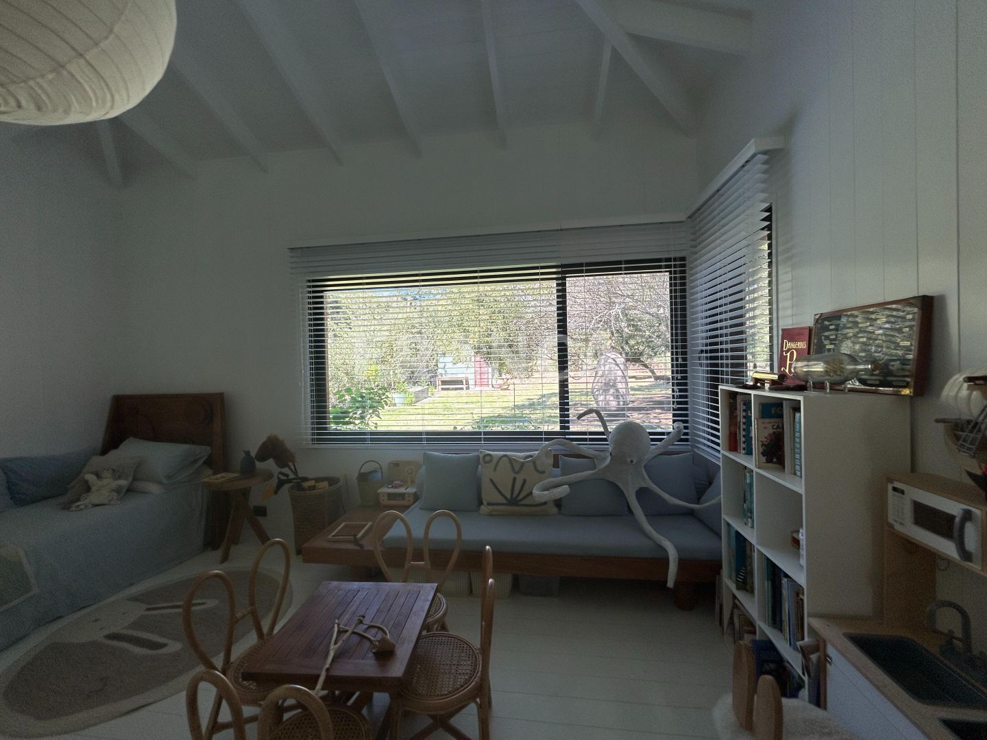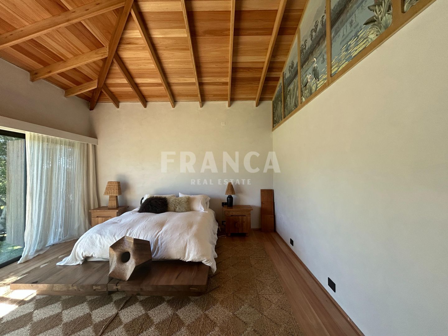 Casa Amapola - Punta PiedrasModerna y luminosa, esta casa de diseño único se encuentra en el exclusivo barrio Mangrullos, a solo 1 km del mar. La propiedad cuenta con 4 dormitorios con baño privado, distribuidos entre el módulo principal y un bungalow exterior, ofreciendo comodidad y privacidad.Sobre un lote de 4.000 m² y con 200 m² construidos, la casa ofrece amplios espacios para disfrutar del entorno: un sector frente al tajamar ideal para bañarse y un área en el bosque para relajarse o compartir momentos al aire libre.Entre sus comodidades, la vivienda incluye pantalla y proyector, perfecta para disfrutar de películas o eventos en familia. Los dormitorios cuentan con aire acondicionado.Una opción única para quienes buscan diseño, naturaleza y cercanía al mar en Punta Piedras.