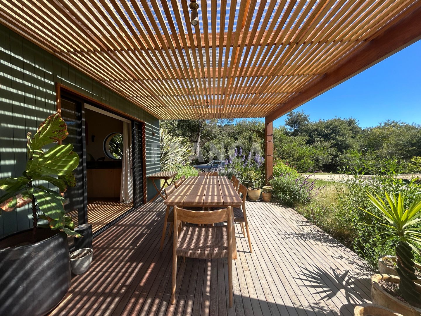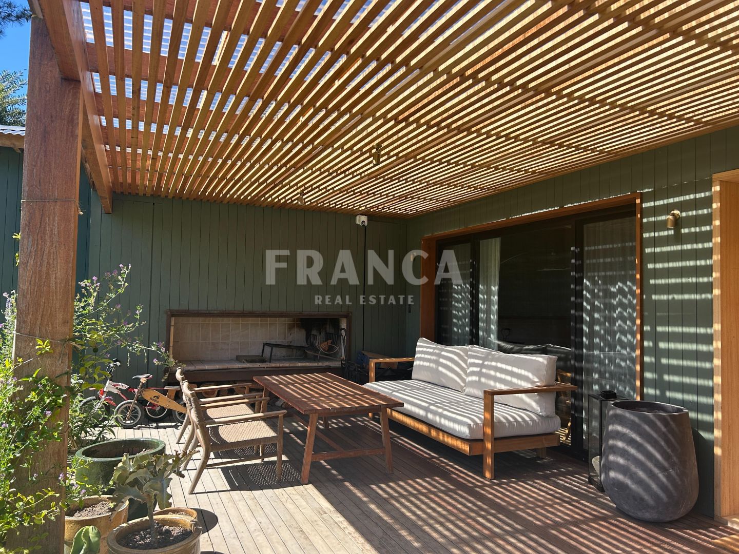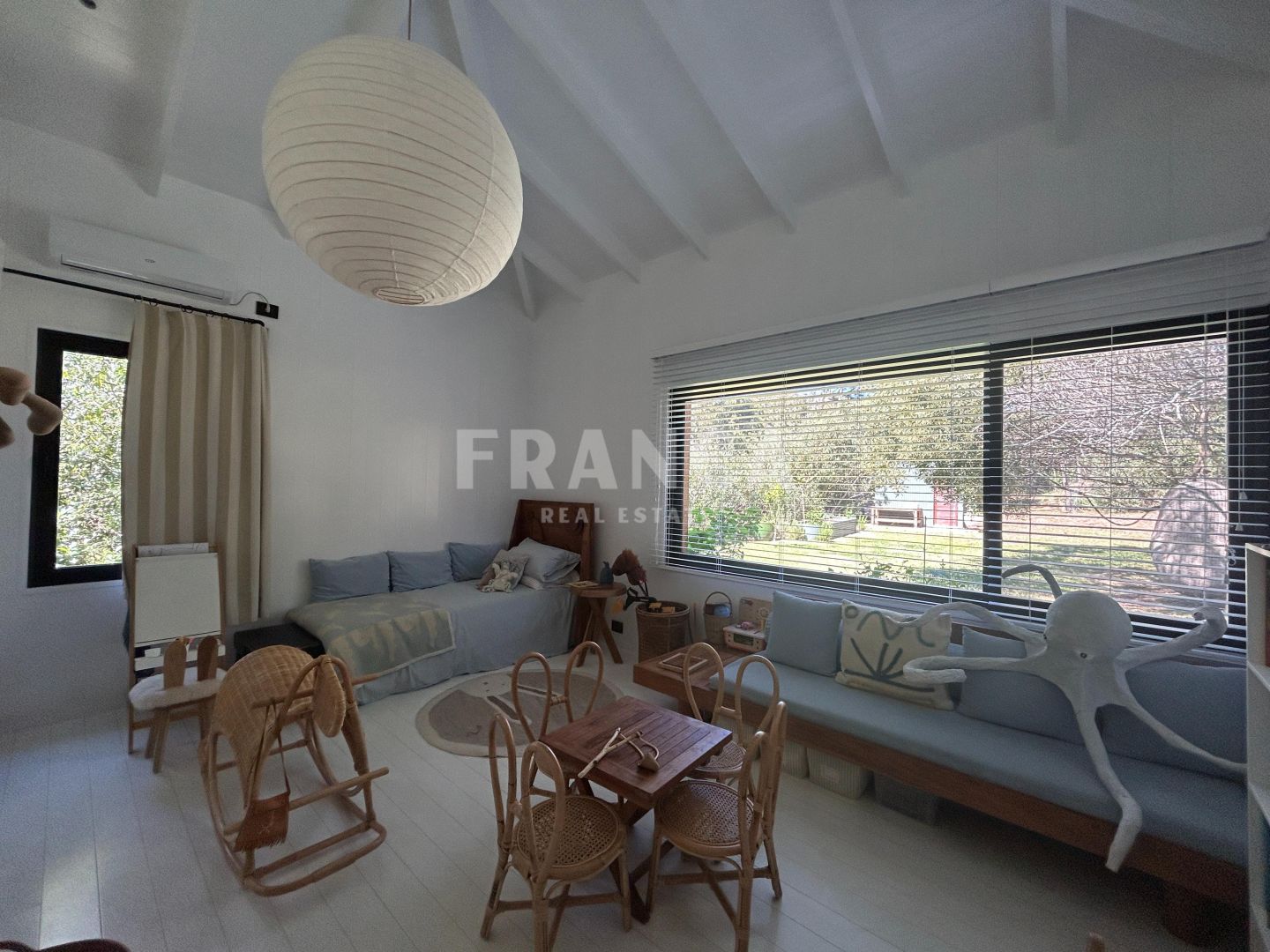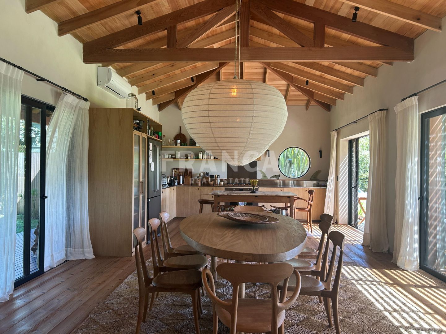 Casa Amapola - Punta PiedrasModerna y luminosa, esta casa de diseño único se encuentra en el exclusivo barrio Mangrullos, a solo 1 km del mar. La propiedad cuenta con 4 dormitorios con baño privado, distribuidos entre el módulo principal y un bungalow exterior, ofreciendo comodidad y privacidad.Sobre un lote de 4.000 m² y con 200 m² construidos, la casa ofrece amplios espacios para disfrutar del entorno: un sector frente al tajamar ideal para bañarse y un área en el bosque para relajarse o compartir momentos al aire libre.Entre sus comodidades, la vivienda incluye pantalla y proyector, perfecta para disfrutar de películas o eventos en familia. Los dormitorios cuentan con aire acondicionado.Una opción única para quienes buscan diseño, naturaleza y cercanía al mar en Punta Piedras.