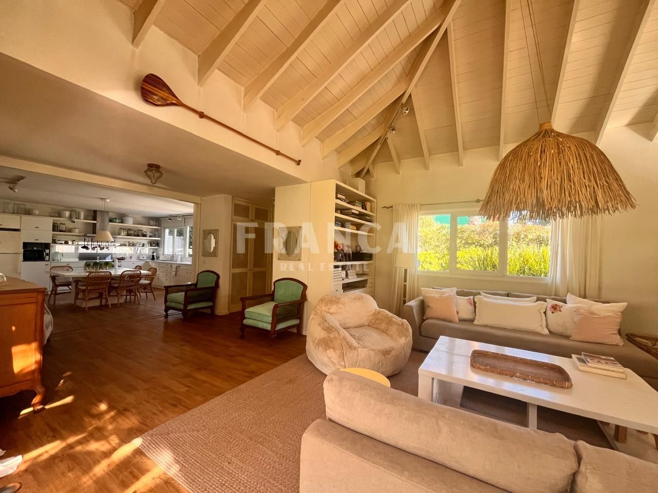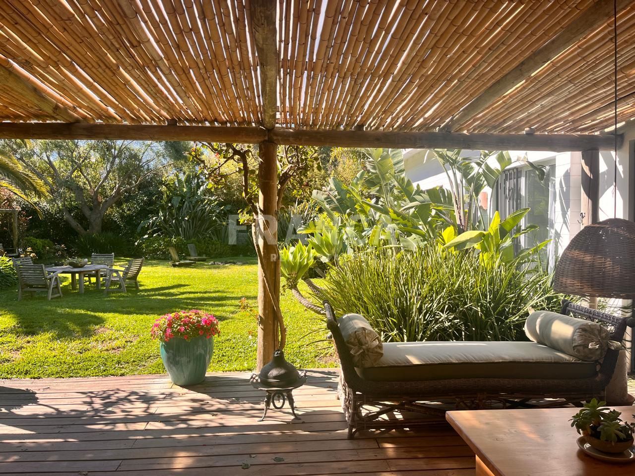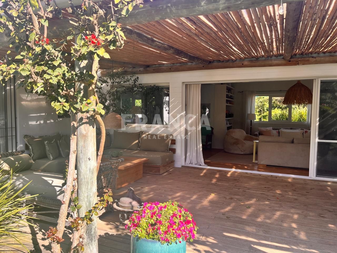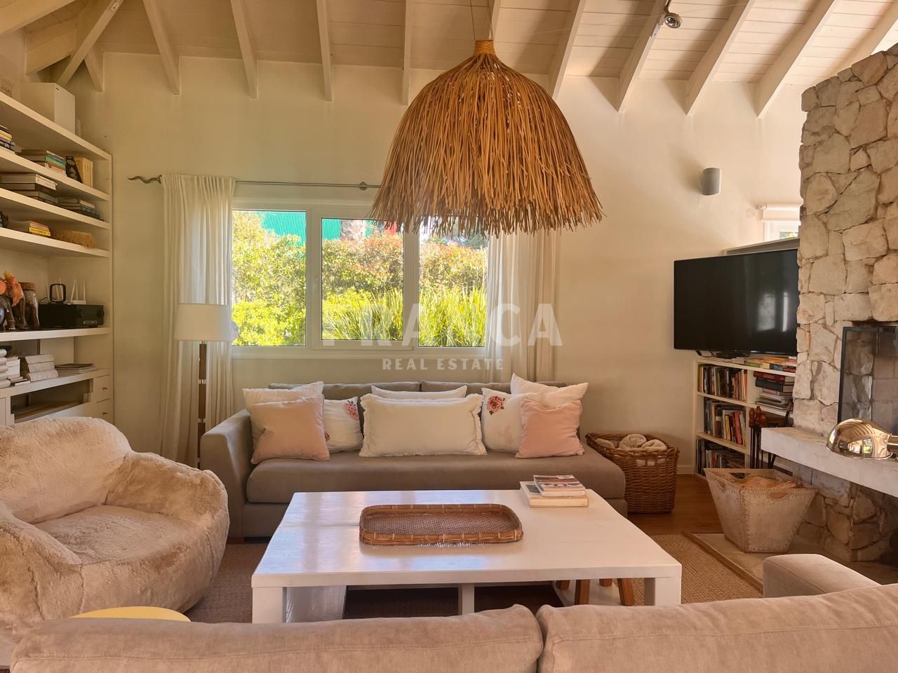 Alquiler temporario de Casa en La Barra, MaldonadoEncantadora casa en una de las zonas más tranquilas y arboladas de La Barra, donde la comodidad y la privacidad se integran armónicamente con un entorno natural cuidado y sereno.La propiedad ofrece una gran master suite con vestidor y un baño amplio con jacuzzi, diseñada como un verdadero refugio de descanso. Una segunda suite más pequeña, ideal para dos personas, complementa perfectamente la distribución principal.En el exterior, se accede por una escalera se encuentra en una segunda planta cuenta con un espacio independiente ?que se puede utilizar como tercer dormitorio? brinda gran flexibilidad: puede configurarse con tres camas individuales o dos cuchetas para alojar cómodamente hasta cuatro personas, lo que lo convierte en una opción ideal para adolescentes o invitados.La casa cuenta con una cocina definida, un living acogedor con área de escritorio, y se destaca por su decoración cálida y cuidada, pensada para sentirse en casa desde el primer momento.El jardín, amplio y completamente parquizado, ofrece distintos rincones para disfrutar al aire libre, incluyendo un encantador fogón, una huerta orgánica y zonas sombreadas por árboles maduros. También cuenta con un garaje abierto, una ducha exterior perfecta para regresar de la playa, lavadero independiente con baño, y comodidades modernas como aire acondicionado en todos los ambientes, alarma con monitoreo y cámaras exteriores de seguridad.Una propiedad completa y versátil, ideal para vivir La Barra con tranquilidad, estilo y conexión con la naturaleza.