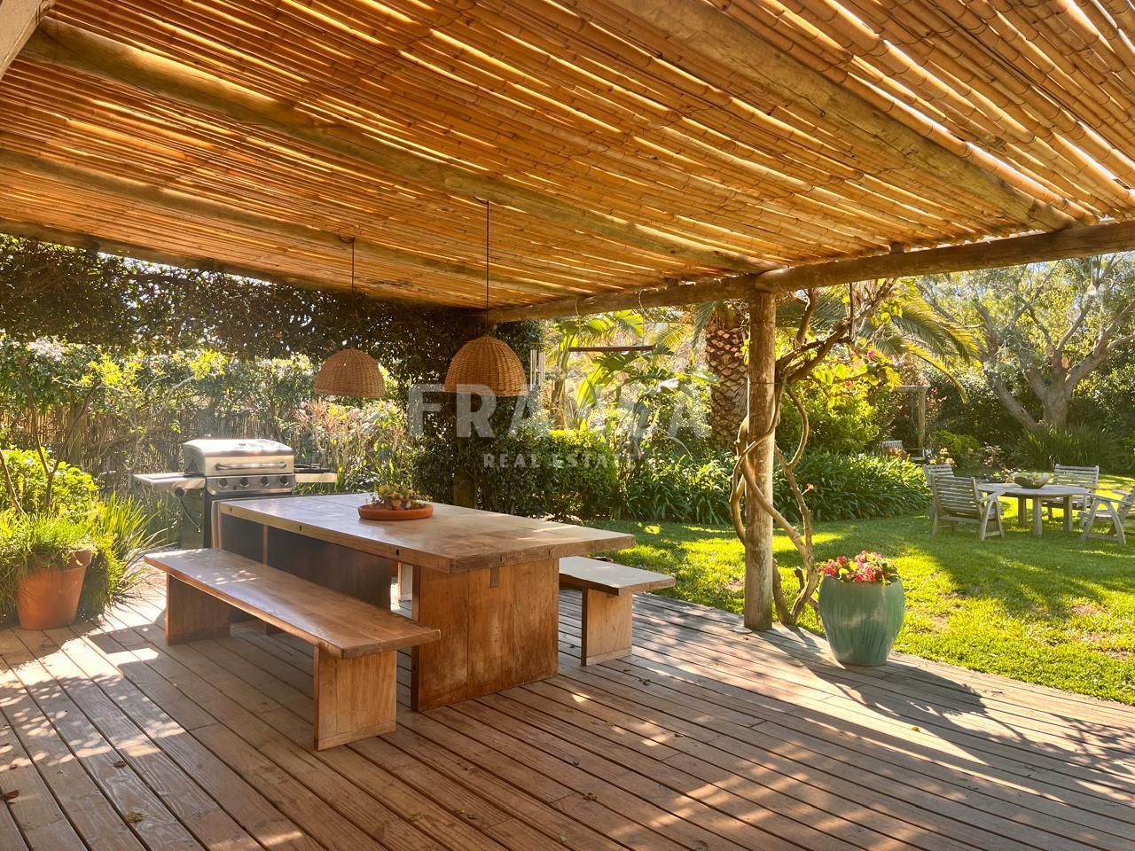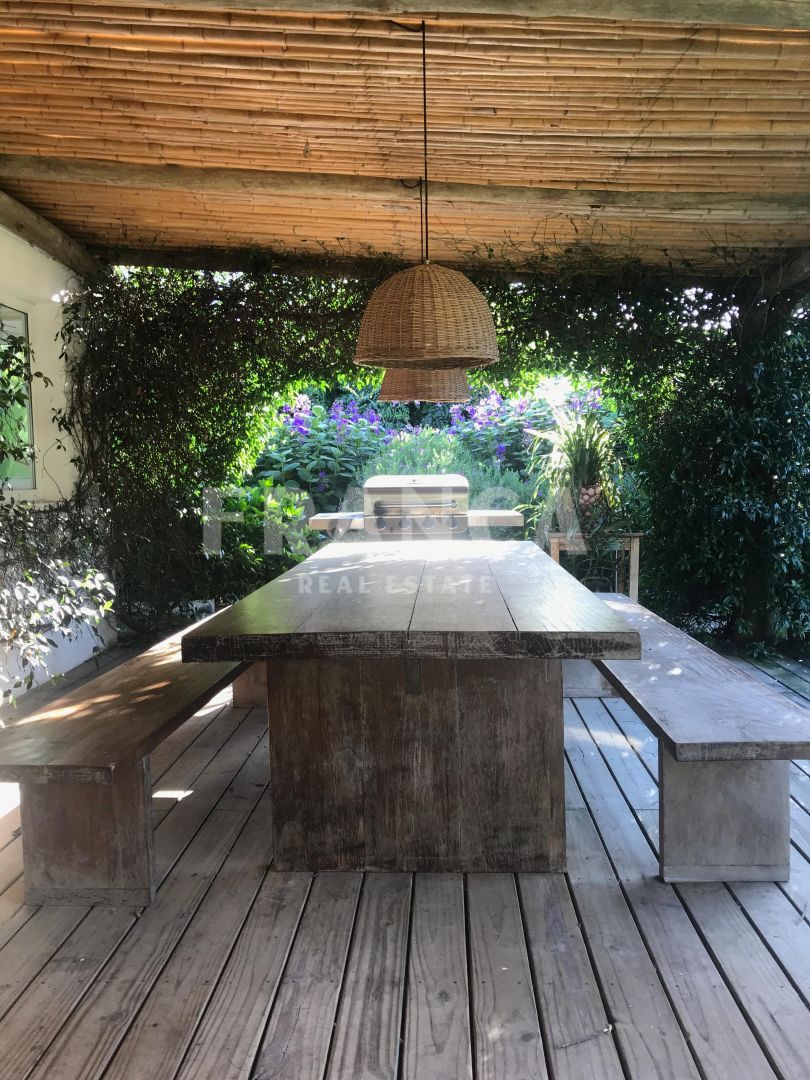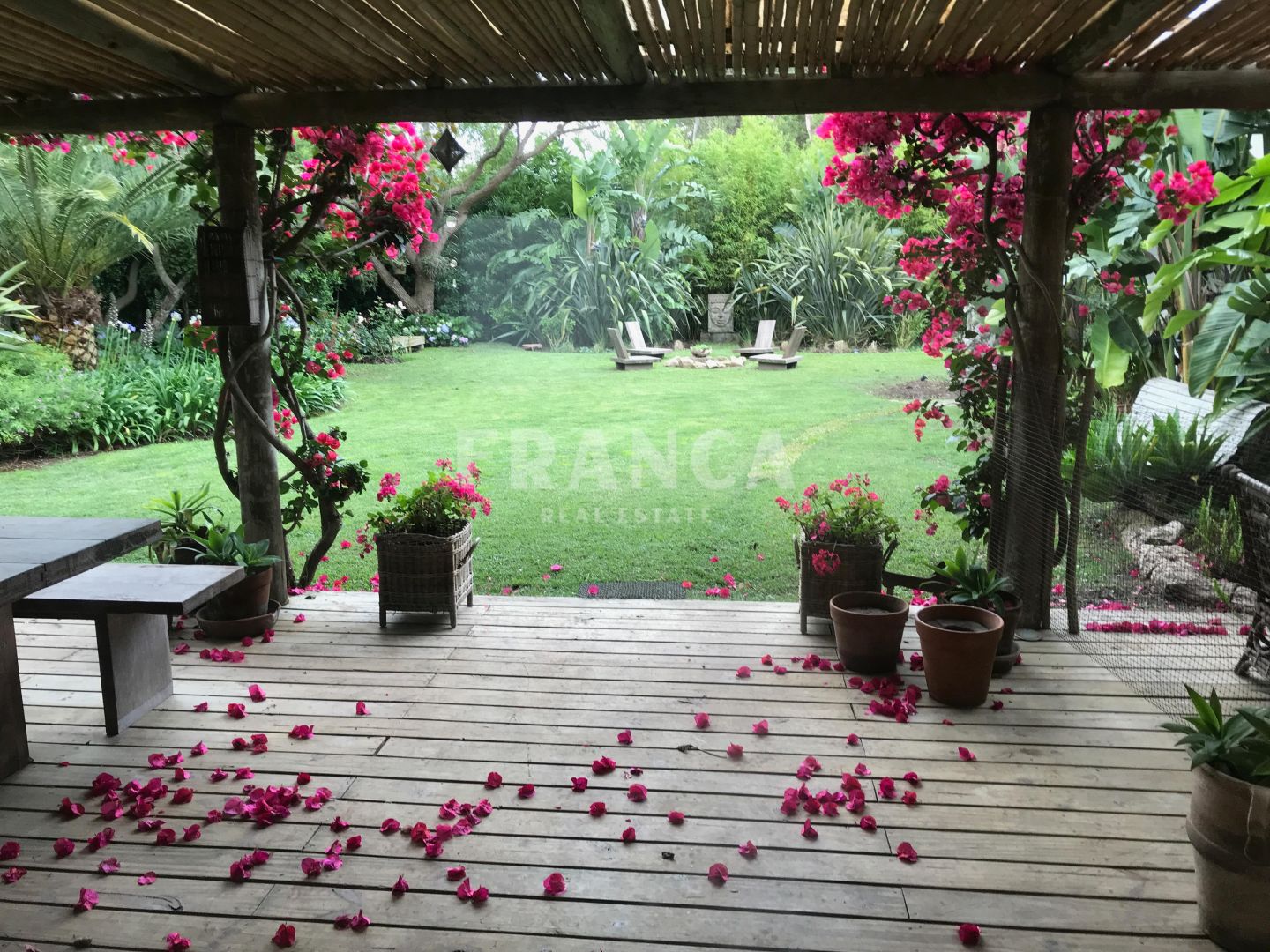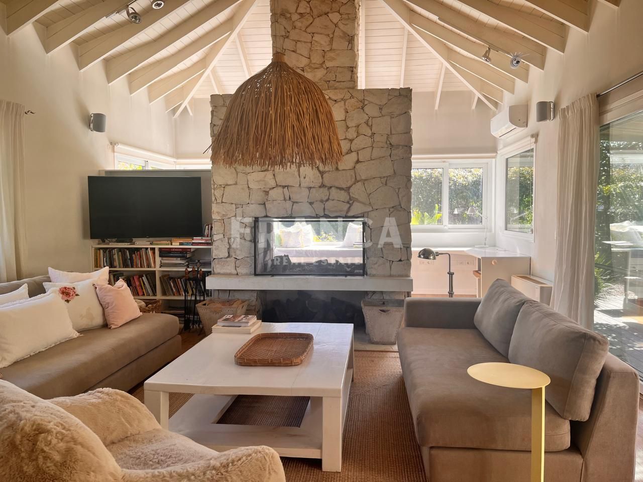 Alquiler temporario de Casa en La Barra, MaldonadoEncantadora casa en una de las zonas más tranquilas y arboladas de La Barra, donde la comodidad y la privacidad se integran armónicamente con un entorno natural cuidado y sereno.La propiedad ofrece una gran master suite con vestidor y un baño amplio con jacuzzi, diseñada como un verdadero refugio de descanso. Una segunda suite más pequeña, ideal para dos personas, complementa perfectamente la distribución principal.En el exterior, se accede por una escalera se encuentra en una segunda planta cuenta con un espacio independiente ?que se puede utilizar como tercer dormitorio? brinda gran flexibilidad: puede configurarse con tres camas individuales o dos cuchetas para alojar cómodamente hasta cuatro personas, lo que lo convierte en una opción ideal para adolescentes o invitados.La casa cuenta con una cocina definida, un living acogedor con área de escritorio, y se destaca por su decoración cálida y cuidada, pensada para sentirse en casa desde el primer momento.El jardín, amplio y completamente parquizado, ofrece distintos rincones para disfrutar al aire libre, incluyendo un encantador fogón, una huerta orgánica y zonas sombreadas por árboles maduros. También cuenta con un garaje abierto, una ducha exterior perfecta para regresar de la playa, lavadero independiente con baño, y comodidades modernas como aire acondicionado en todos los ambientes, alarma con monitoreo y cámaras exteriores de seguridad.Una propiedad completa y versátil, ideal para vivir La Barra con tranquilidad, estilo y conexión con la naturaleza.