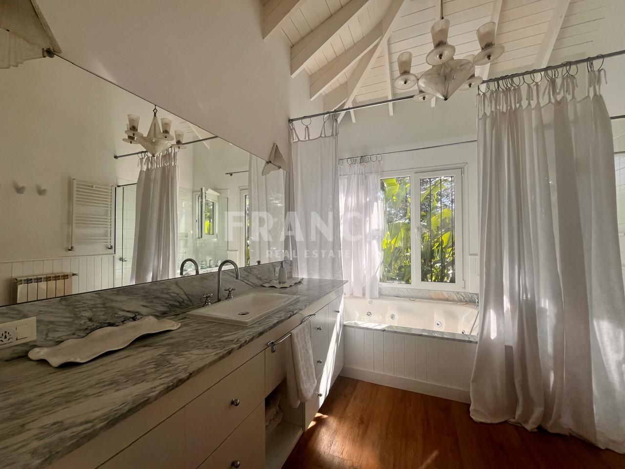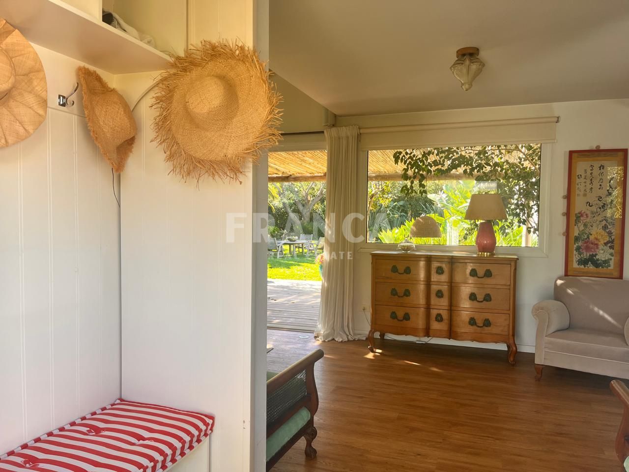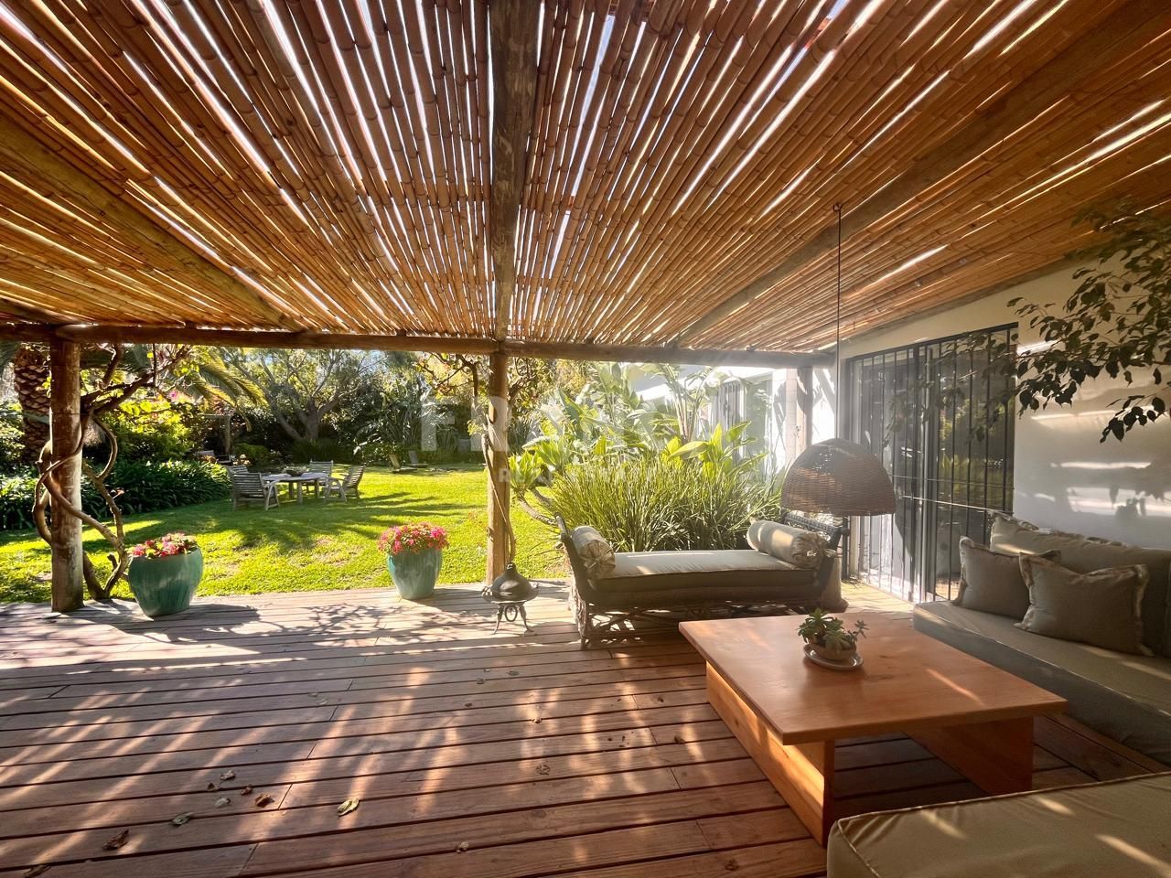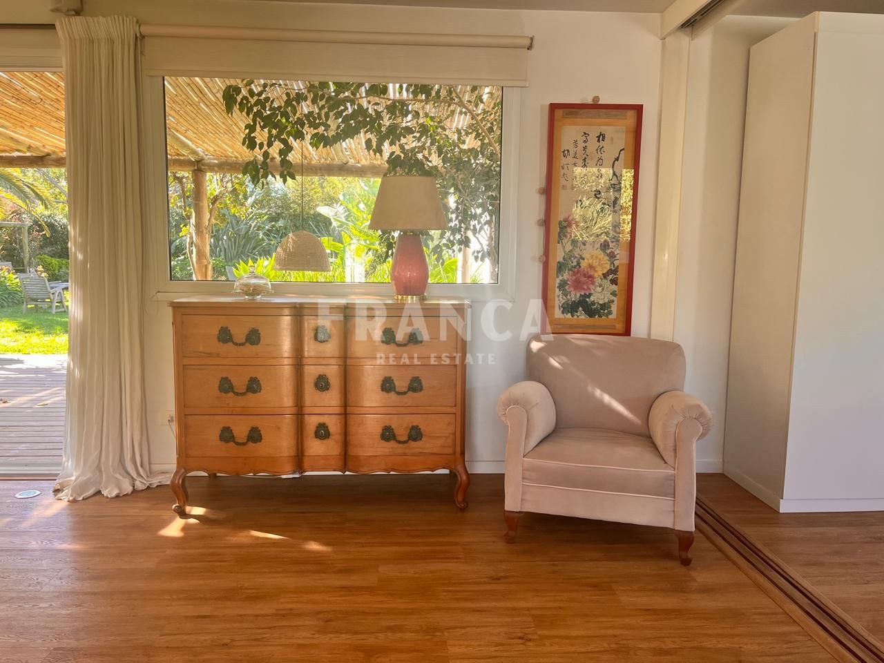 Alquiler temporario de Casa en La Barra, MaldonadoEncantadora casa en una de las zonas más tranquilas y arboladas de La Barra, donde la comodidad y la privacidad se integran armónicamente con un entorno natural cuidado y sereno.La propiedad ofrece una gran master suite con vestidor y un baño amplio con jacuzzi, diseñada como un verdadero refugio de descanso. Una segunda suite más pequeña, ideal para dos personas, complementa perfectamente la distribución principal.En el exterior, se accede por una escalera se encuentra en una segunda planta cuenta con un espacio independiente ?que se puede utilizar como tercer dormitorio? brinda gran flexibilidad: puede configurarse con tres camas individuales o dos cuchetas para alojar cómodamente hasta cuatro personas, lo que lo convierte en una opción ideal para adolescentes o invitados.La casa cuenta con una cocina definida, un living acogedor con área de escritorio, y se destaca por su decoración cálida y cuidada, pensada para sentirse en casa desde el primer momento.El jardín, amplio y completamente parquizado, ofrece distintos rincones para disfrutar al aire libre, incluyendo un encantador fogón, una huerta orgánica y zonas sombreadas por árboles maduros. También cuenta con un garaje abierto, una ducha exterior perfecta para regresar de la playa, lavadero independiente con baño, y comodidades modernas como aire acondicionado en todos los ambientes, alarma con monitoreo y cámaras exteriores de seguridad.Una propiedad completa y versátil, ideal para vivir La Barra con tranquilidad, estilo y conexión con la naturaleza.