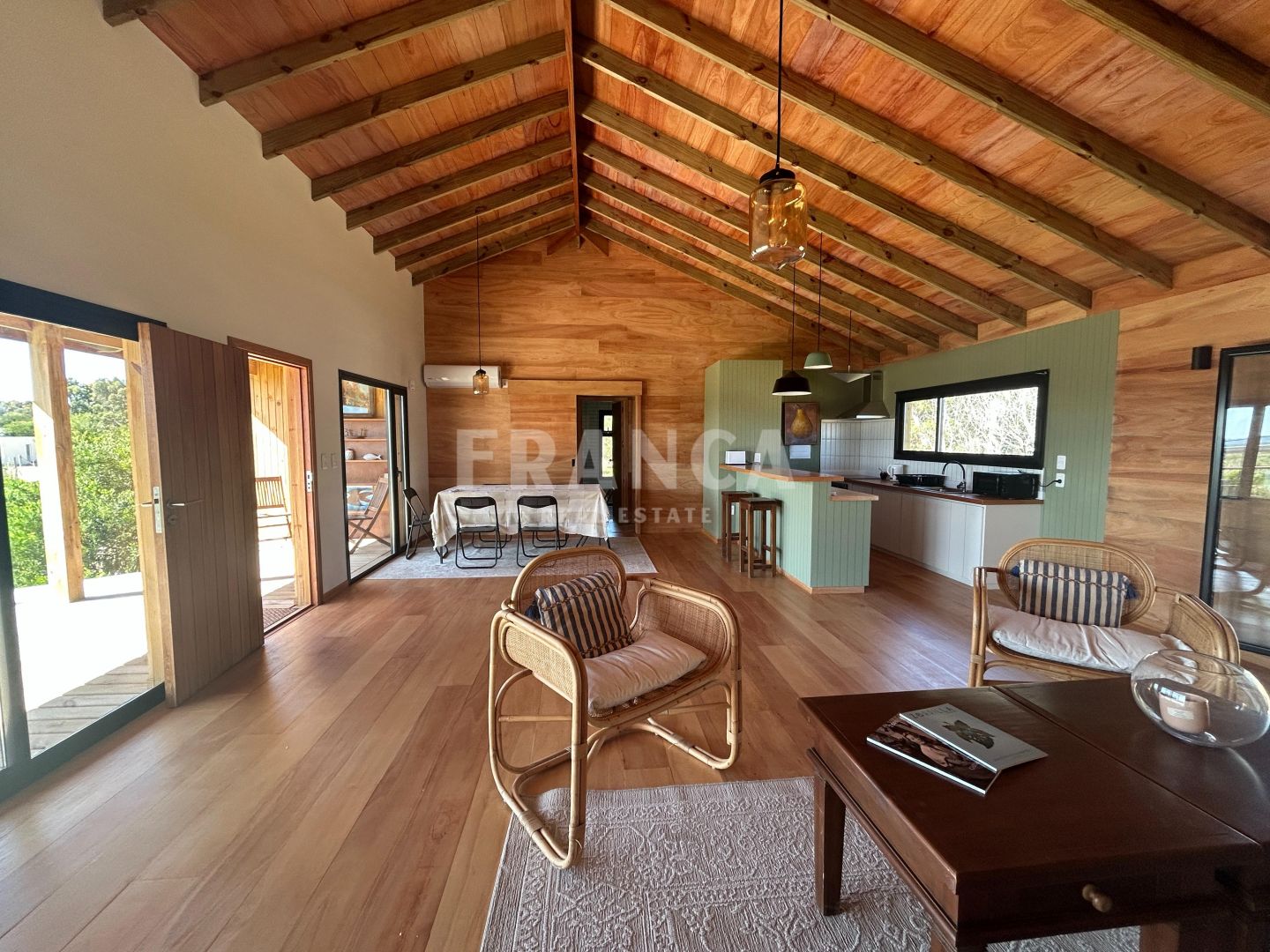 Casa de 120 m² construidos sobre un terreno de 850 m², diseñada en altura para aprovechar las vistas al humedal y al Arroyo Maldonado.Construida con sistema woodframe y revestimiento exterior en pino tratado, combina eficiencia, calidez y estilo natural.Cuenta con una suite principal, dos dormitorios que comparten un baño completo, y un amplio espacio integrado de cocina, living y comedor, con excelente ventilación cruzada.Todas las habitaciones disponen de aire acondicionado y aberturas con DVH, garantizando confort térmico y acústico durante todo el año.La propiedad incluye además un depósito, medio cuarto de servicio y un guardadero, sumando funcionalidad y espacio de almacenaje.Totalmente equipada y pensada para disfrutar de la tranquilidad del entorno natural con vistas abiertas y una construcción moderna y eficiente.