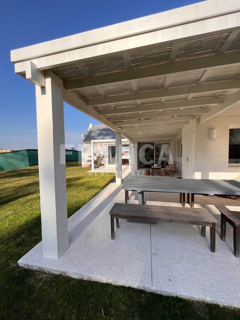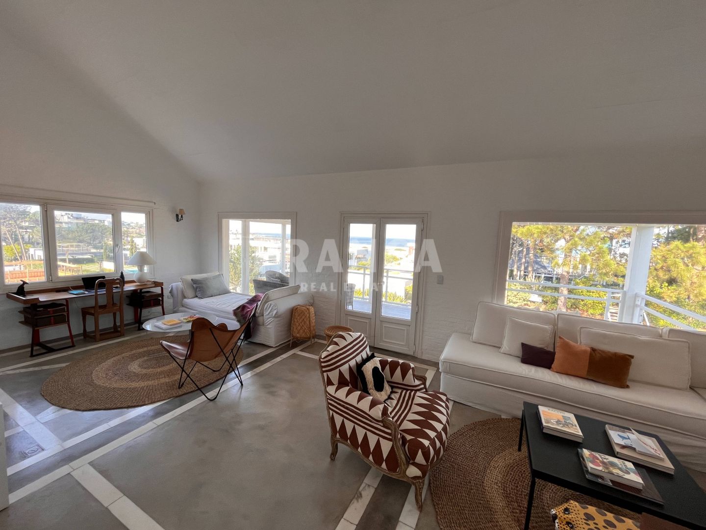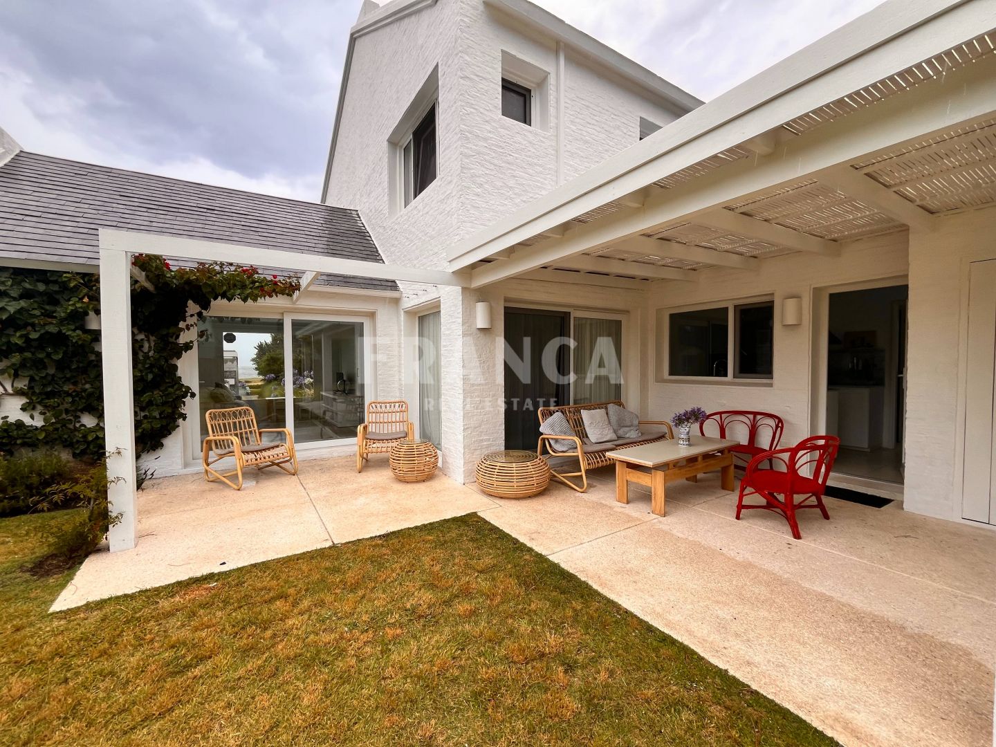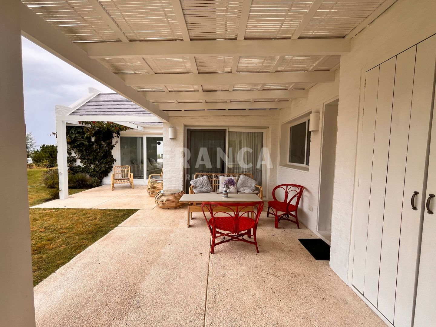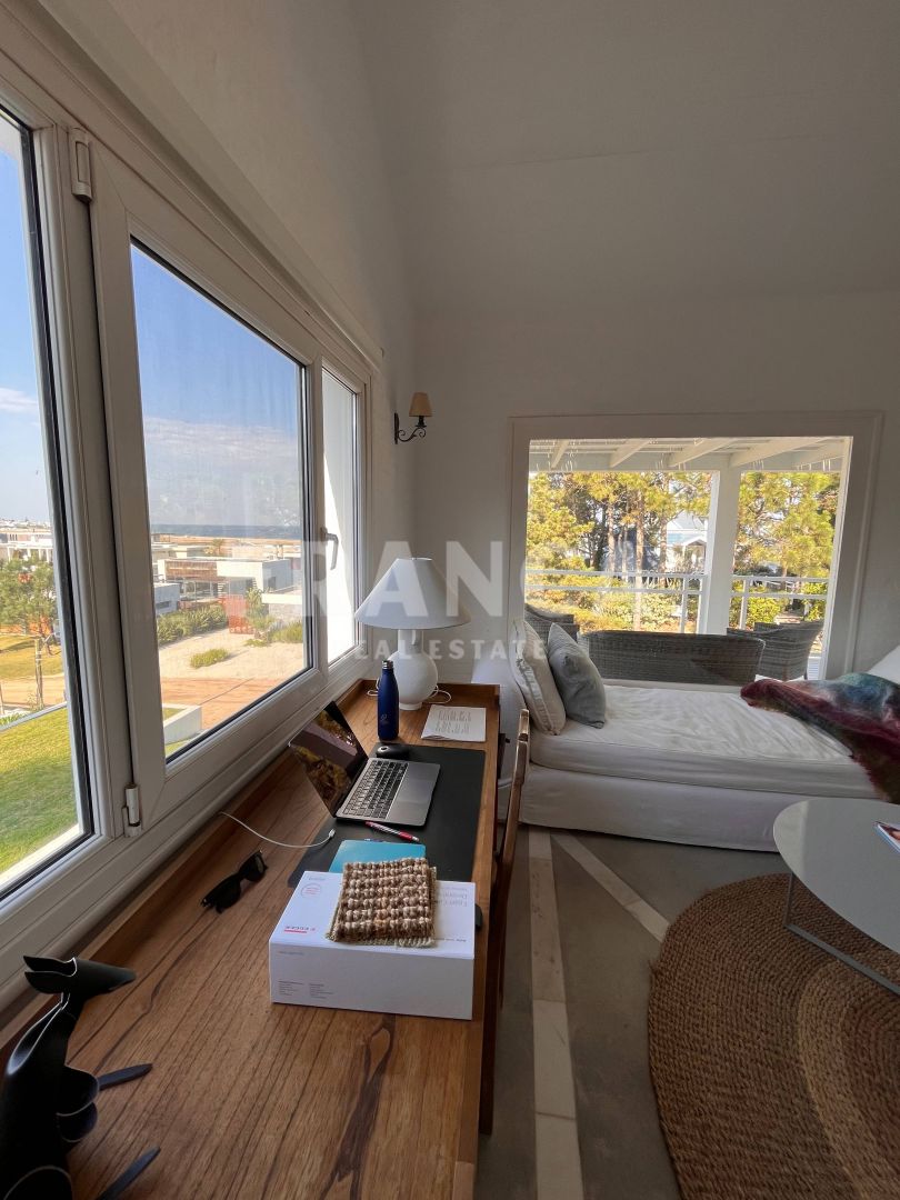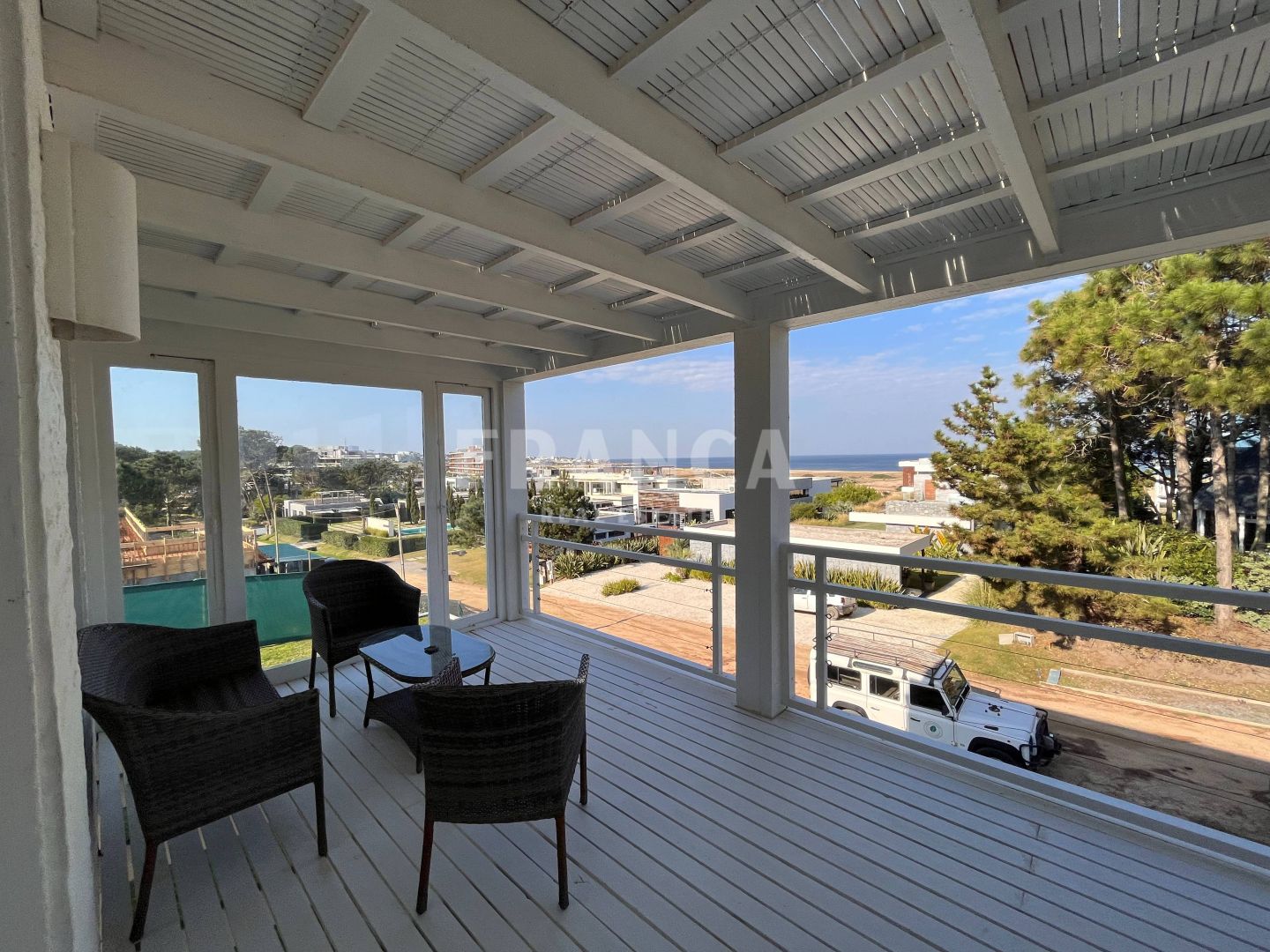 Alquiler temporario de Casa en Laguna Blanca, Manantiales.Amplia propiedad en el exclusivo barrio cerrado Laguna Blanca, ubicada en un terreno elevado, con una hermosa vista al mar desde su terraza.Esta cálida casa tiene tres habitaciones y tres baños. La suite principal ocupa la planta alta, mientras que las dos habitaciones adicionales se encuentran en la planta baja. La zona de estar y comedor se integra de manera armoniosa con la terraza, brindando vistas espectaculares al mar.Cuenta también con un playroom el cual puede convertirse en otro dormitorio y una habitación de servicio con baño independiente.El amplio jardín cuenta con un sector de parrilla techado con entrada directa a la casa.Cuenta con servicio de vigilancia 24 hs.