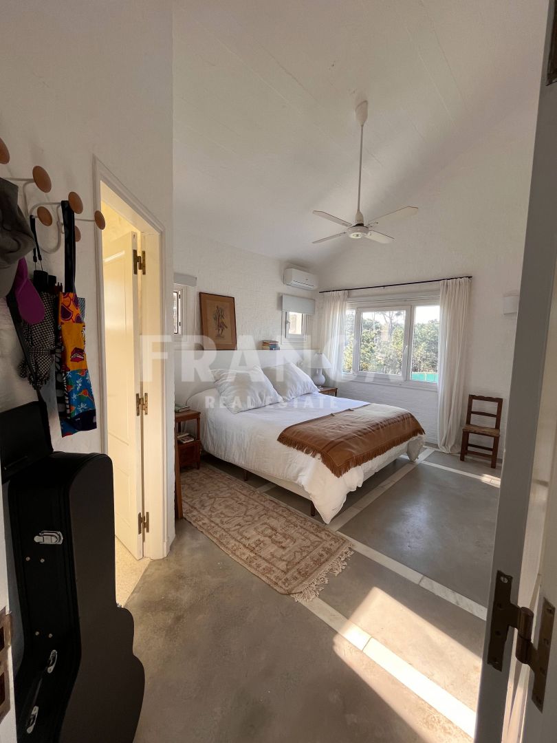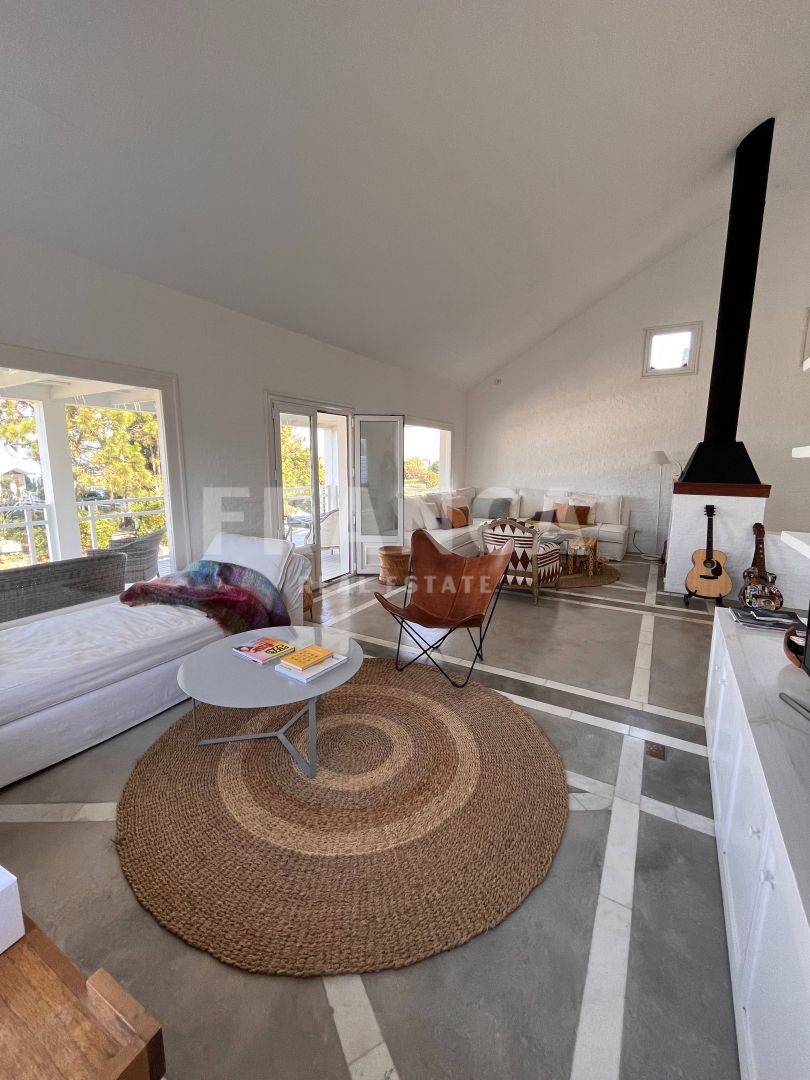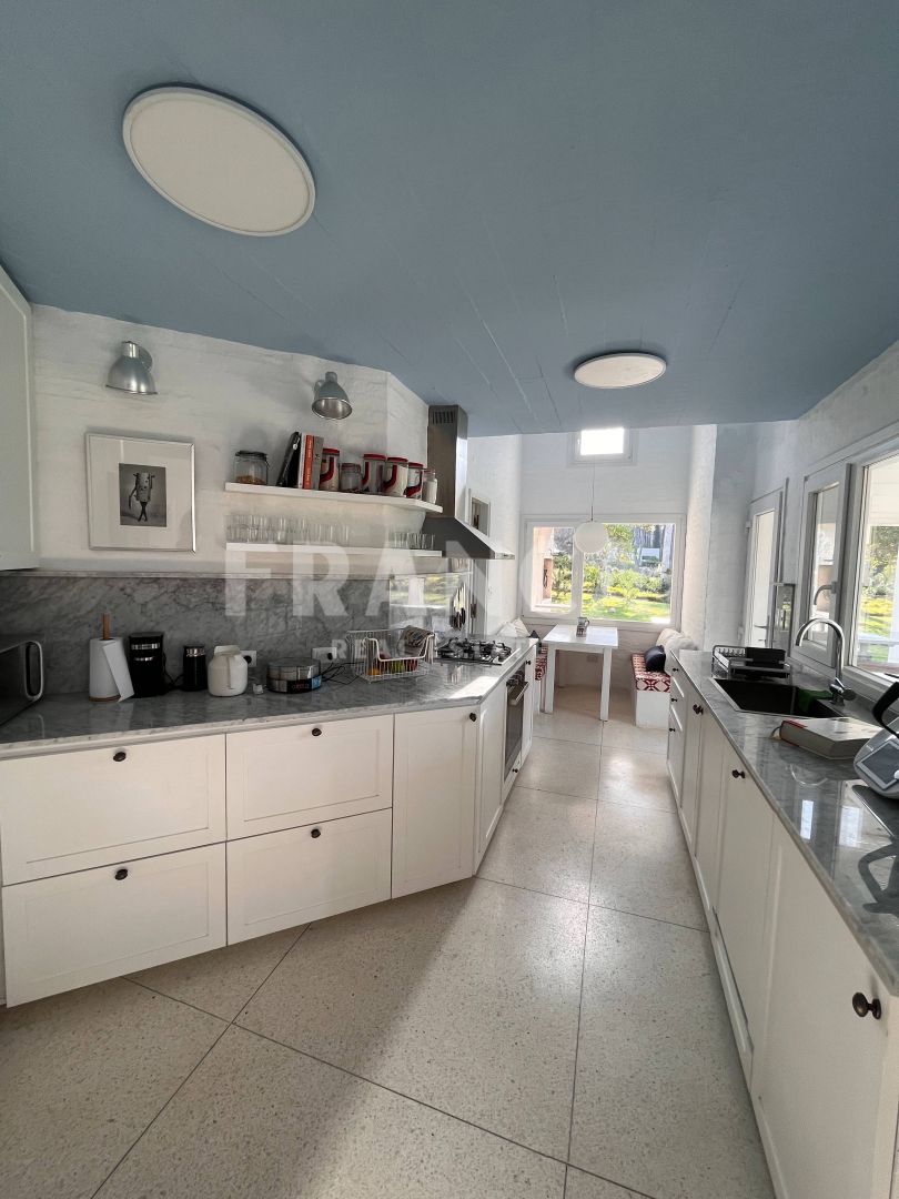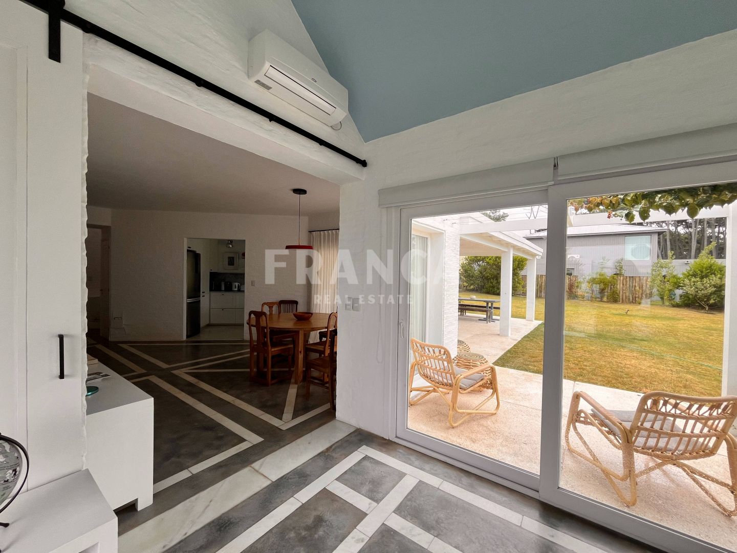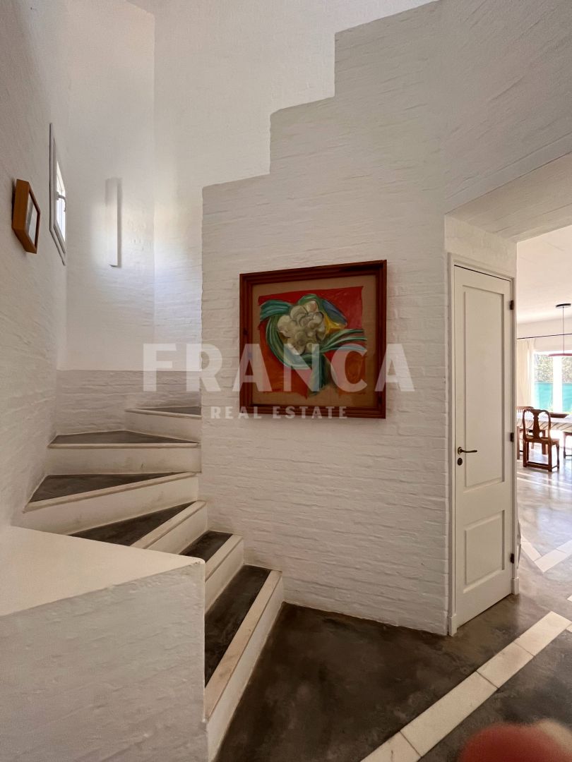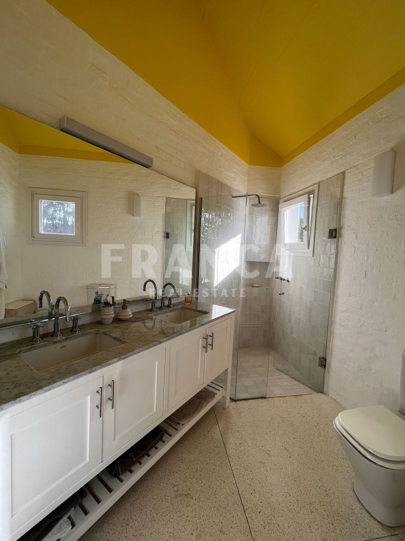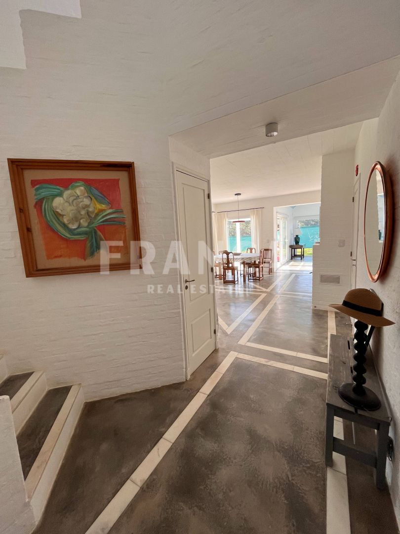 Alquiler temporario de Casa en Laguna Blanca, Manantiales.Amplia propiedad en el exclusivo barrio cerrado Laguna Blanca, ubicada en un terreno elevado, con una hermosa vista al mar desde su terraza.Esta cálida casa tiene tres habitaciones y tres baños. La suite principal ocupa la planta alta, mientras que las dos habitaciones adicionales se encuentran en la planta baja. La zona de estar y comedor se integra de manera armoniosa con la terraza, brindando vistas espectaculares al mar.Cuenta también con un playroom el cual puede convertirse en otro dormitorio y una habitación de servicio con baño independiente.El amplio jardín cuenta con un sector de parrilla techado con entrada directa a la casa.Cuenta con servicio de vigilancia 24 hs.