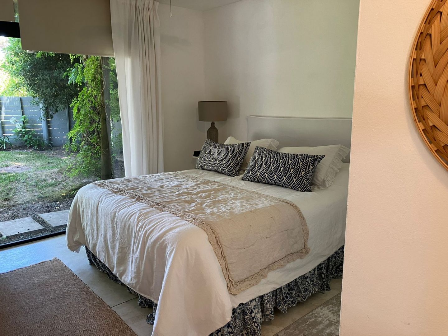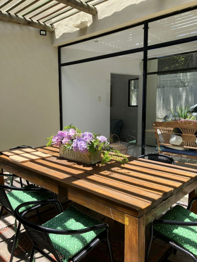 Tras una luminosa recepción con vista al patio interior, se accede a ambientes cálidos y naturales. Un living con vista al jardín integrado a la cocina tipo americana y el comedor con ventilador de techo, cuatro dormitorios, en planta baja un dormitorio en suite con cama matrimonial y aire acondicionado, un dormitorio con una cama marinera y aire acondicionado y un baño completo. En la planta alta dos dormitorios con dos cama c/u y ventilador de techo y un baño. Dependencia de servicio con baño independiente a la casa. Parrillero y estacionamiento.