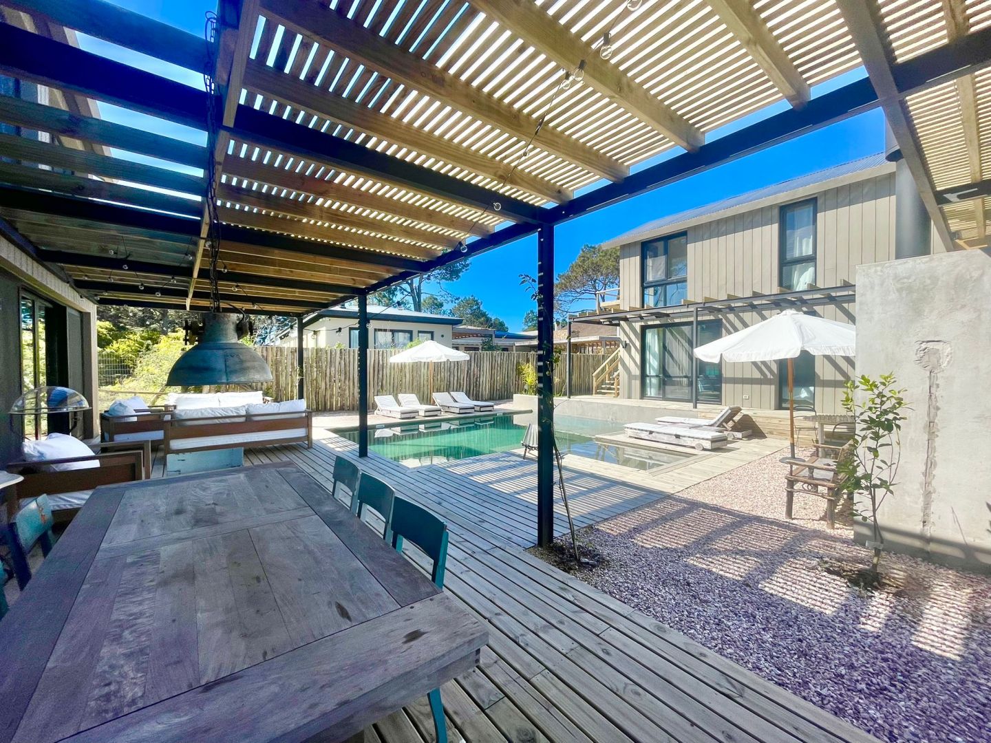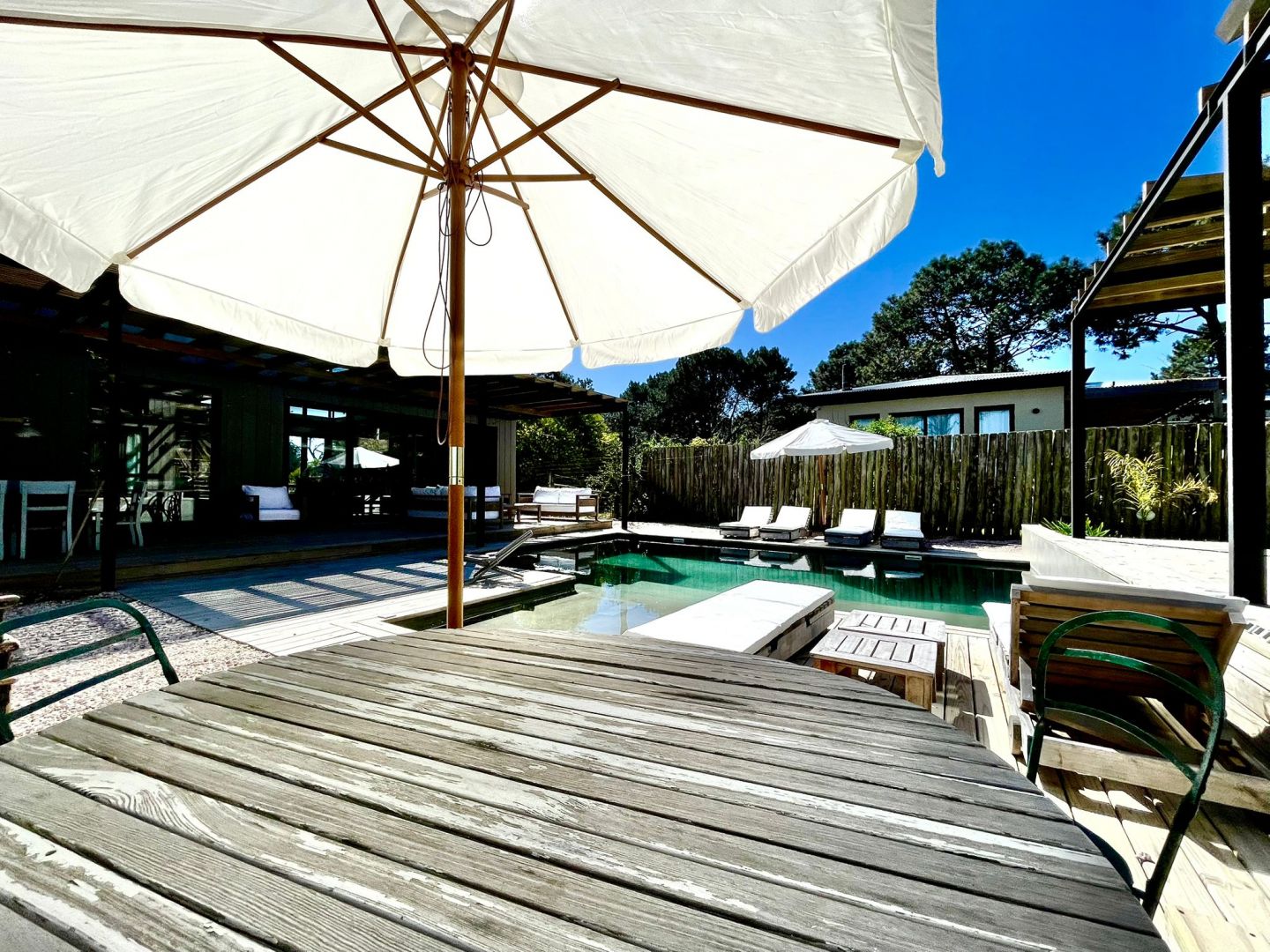Alquiler Temporario de Casa en Pinar del Faro, José Ignacio.Exclusiva casa en Pinar del Faro - 5 y dependencia de servicio dormitorios, 6 baños, confort y diseño en entorno naturalUbicada en uno de los balnearios más prestigiosos y tranquilos de la costa, esta propiedad ha sido concebida para ofrecer una experiencia de vida única, combinando amplitud, confort y diseño moderno en un entorno natural privilegiado.La casa cuenta con 8 dormitorios amplios, varios de ellos en suite, lo que permite alojar cómodamente a una familia numerosa o recibir invitados con total privacidad. Los 6 baños distribuidos de manera funcional garantizan practicidad y comodidad en el día a día.En el área social, destaca un luminoso living de doble altura, con grandes ventanales que enmarcan la vegetación del entorno y permiten una excelente entrada de luz natural. El comedor integrado se conecta armoniosamente con una cocina de estilo americano, equipada con isla central, electrodomésticos de última generación y amplio espacio de guardado, ideal para quienes disfrutan de cocinar y compartir.El diseño fluye hacia el exterior, donde una galería techada con parrillero se convierte en el corazón de los encuentros al aire libre. La piscina privada invita al relax, rodeada de un jardín con excelente parquización, que garantiza privacidad y contacto directo con la naturaleza.Además, la propiedad se encuentra dentro de un barrio cerrado con seguridad 24 horas, lo que suma tranquilidad y exclusividad.Una opción inmejorable para quienes buscan una residencia de categoría para disfrutar de sus vacaciones en uno de los destinos más hermosos de la costa uruguaya.