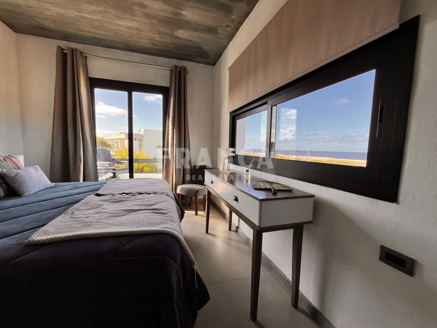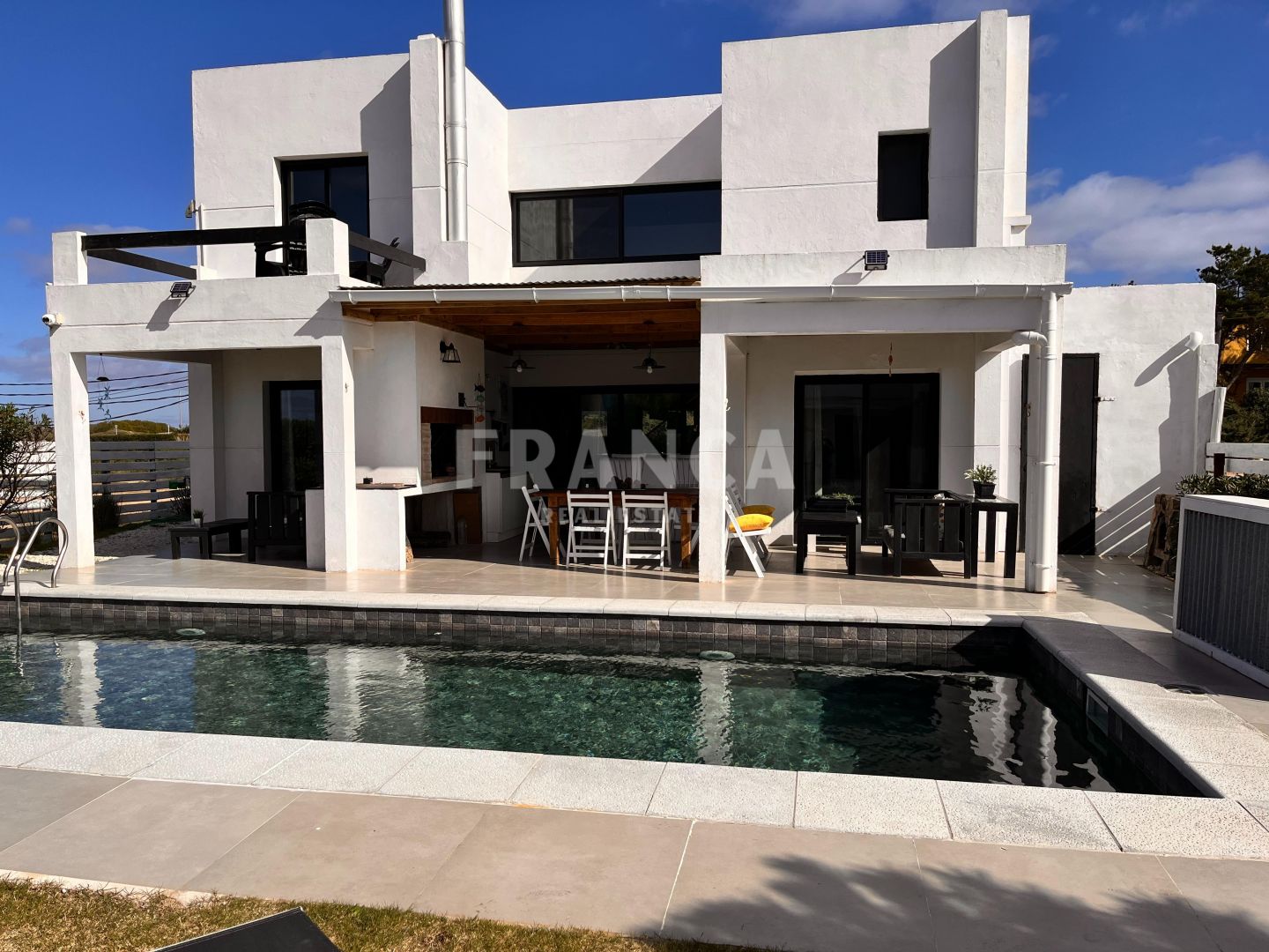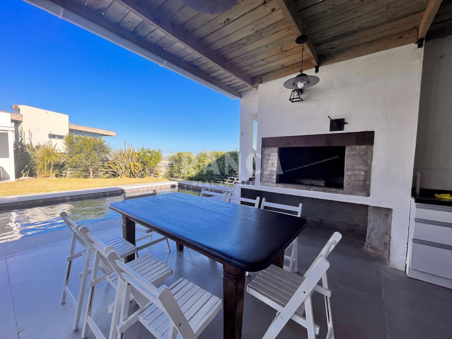 Alquiler temporario de Casa en Playa Montoya, La Barra.Excelente propiedad recientemente reciclada en primera línea de playa Montoya.Excelente oportunidad para pasar unas vacaciones en familia a metros del mar.Esta casa consta de 5 dormitorios en suite, lo que la hace ideal para grupos grandes. Cuatro de ellos se encuentran en la casa principal y uno es independiente, ideal para huéspedes o miembros que quieran más privacidad. Cuenta con un jardín muy cómodo con amplia piscina.Cuenta con una cocina equipada con todo lo necesario, un amplio living comedor con grandes ventanales que se conectan con el exterior. Cuenta con parrilla, y living exterior ideal para reuniones.