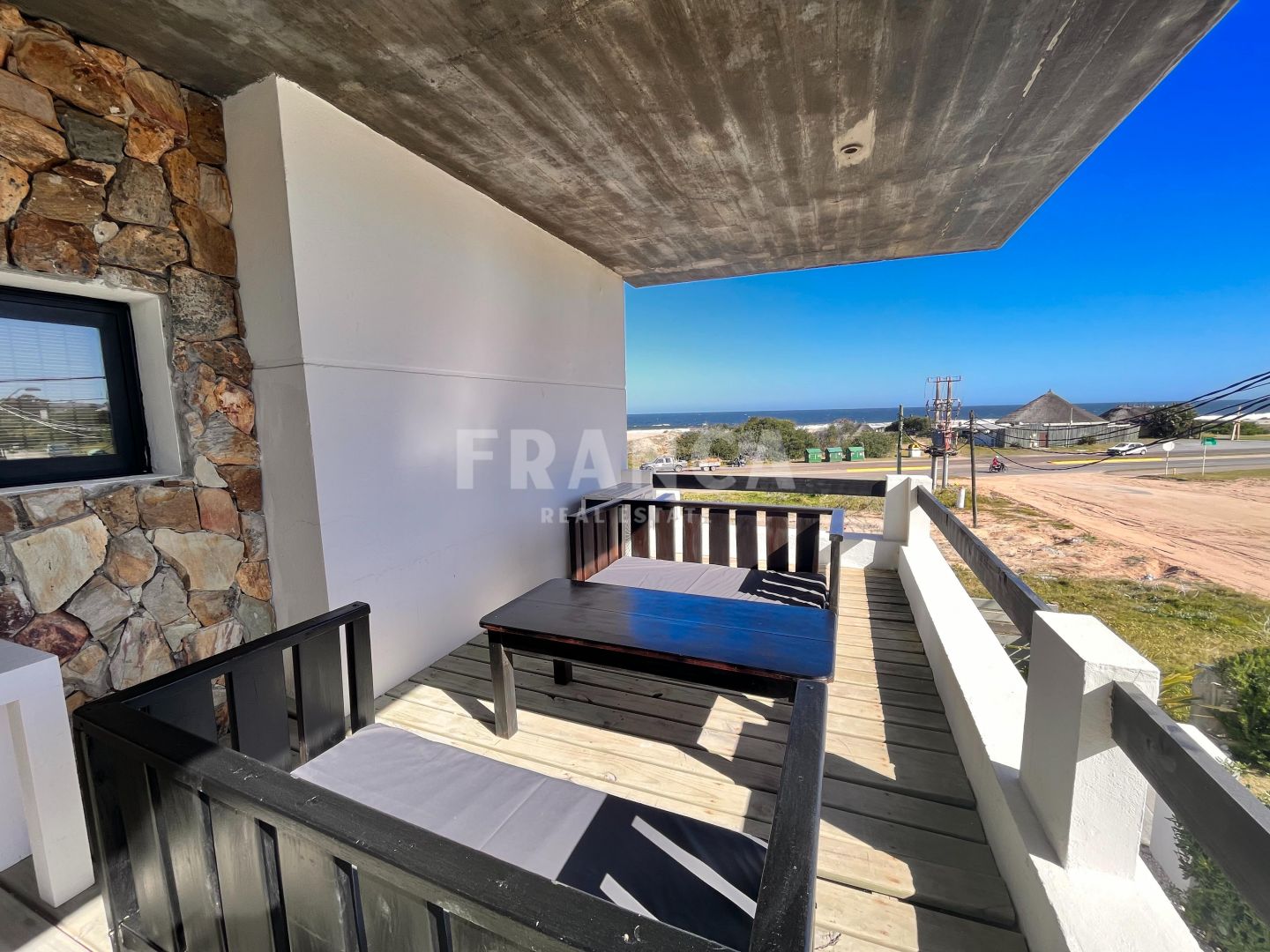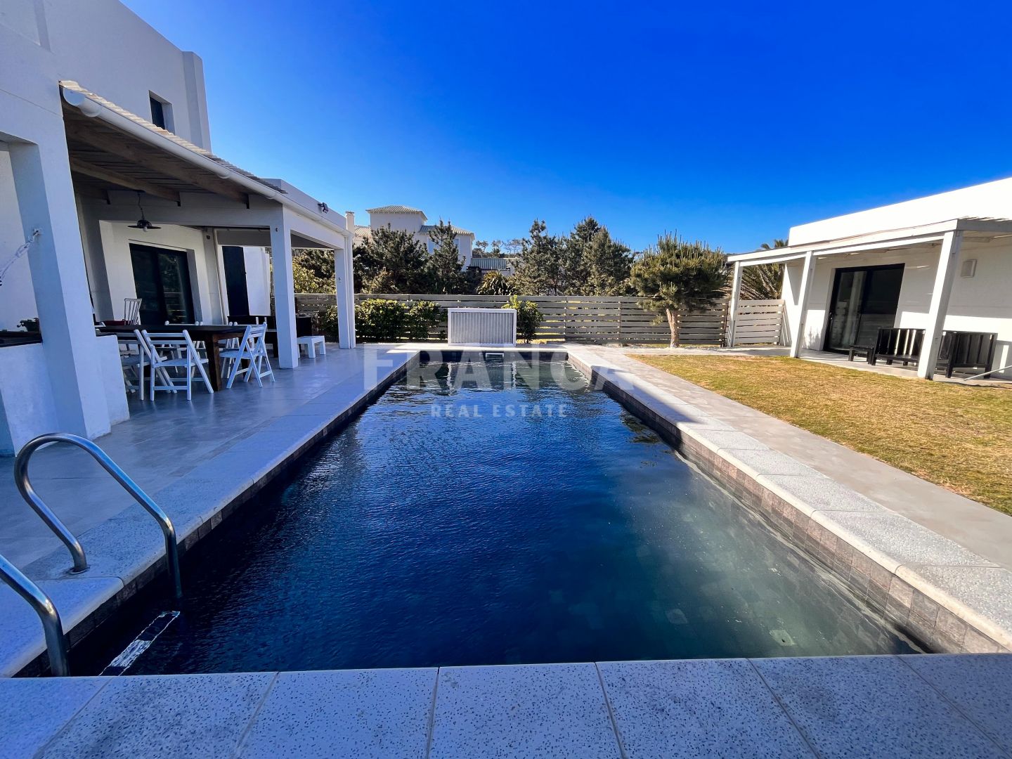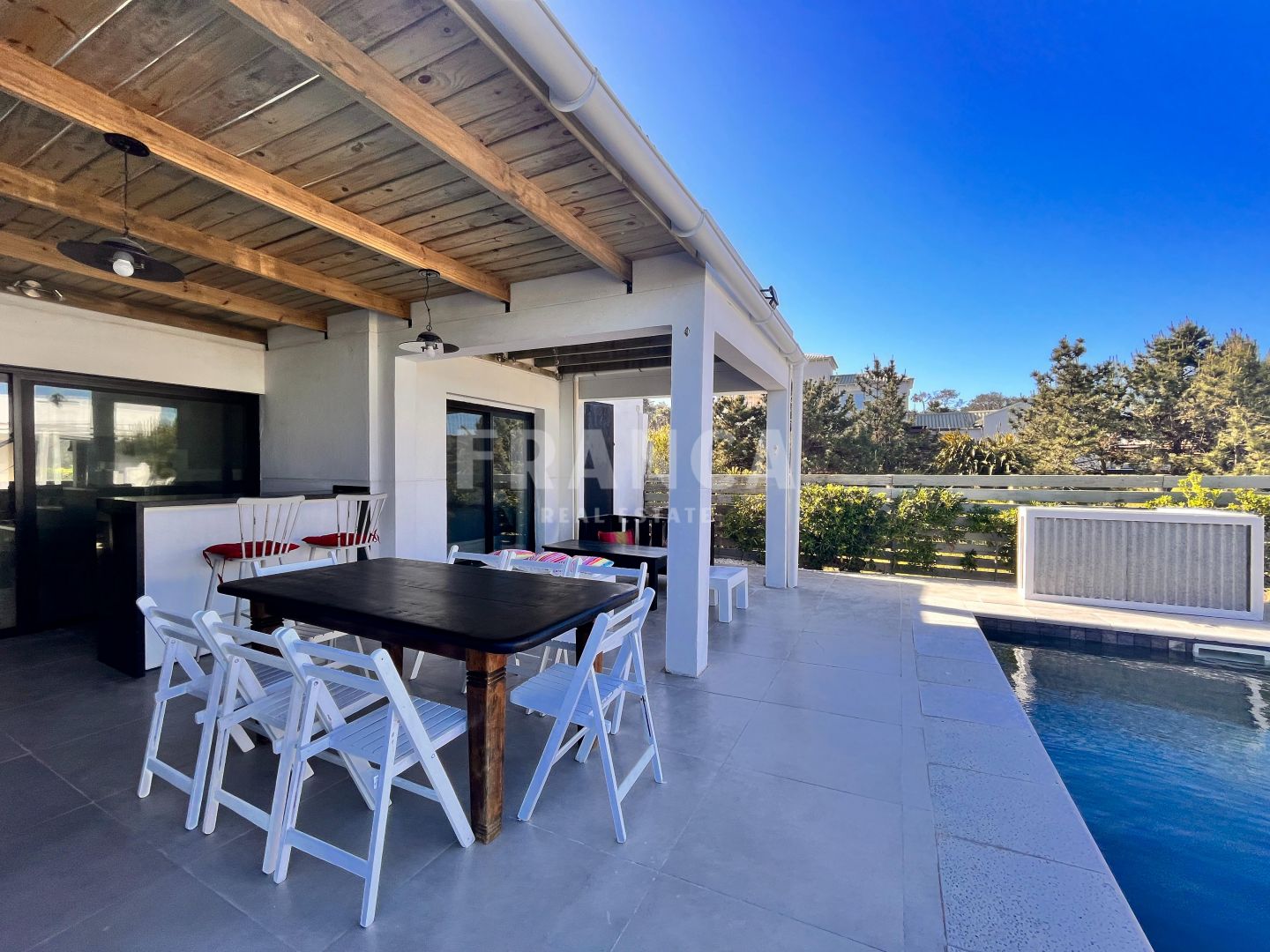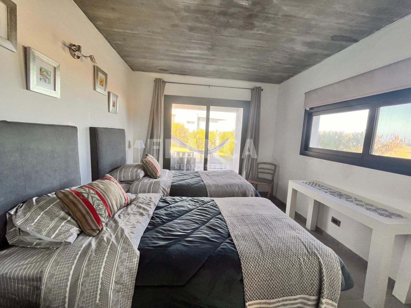 Alquiler temporario de Casa en Playa Montoya, La Barra.Excelente propiedad recientemente reciclada en primera línea de playa Montoya.Excelente oportunidad para pasar unas vacaciones en familia a metros del mar.Esta casa consta de 5 dormitorios en suite, lo que la hace ideal para grupos grandes. Cuatro de ellos se encuentran en la casa principal y uno es independiente, ideal para huéspedes o miembros que quieran más privacidad. Cuenta con un jardín muy cómodo con amplia piscina.Cuenta con una cocina equipada con todo lo necesario, un amplio living comedor con grandes ventanales que se conectan con el exterior. Cuenta con parrilla, y living exterior ideal para reuniones.