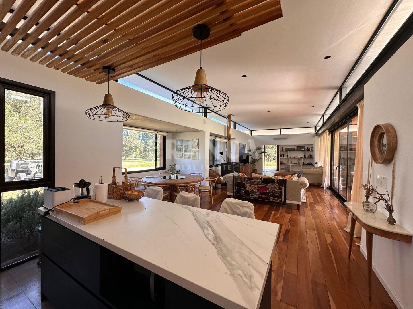 Alquiler de Casa exclusiva en Punta del Este Polo Club, Maldonado.Gran Casa familiar ubicada en un entorno confortable en barrio privado muy tranquilo, con mucha naturaleza , para las mejores vacaciones, con seguridad 24/7 .Zona arbolada a pocas cuadras de la playa La Boyita. Ideal combinación para el descanso rodeado de campo y mar . Muy cerca de puntos de atracción de la costa Este.Gran parquizado verde , vistas al mar , torneos de polo y club house. La propiedad cuenta con espacios interiores muy amplios, grandes ventanales siendo muy luminosa conectada con la naturaleza y jardín. Mediante una sofisticada arquitectura y diseño , se conforman espacios en dos grandes alas divididas por un hall de distribución. Gran cocina integrada al área social y desayunador , livingroom y baño de recibo. 3 dormitorios y dependencia.Una suite matrimonial , dos cuartos con cama matrimoniales o single con baño compartido . Cuarto de dependencia con cama rebatible una plaza en el cuarto de servicio. (De ser necesario)Todos los ambientes cuentan con aire acondicionado frio/calor.Gran pérgola techada con deck y parrillero con muy buena orientación.Piscina con solárium y espacios verdes.Propiedad totalmente equipada, ideal para el descanso, equidistante a 10 minutos tanto de la Barra como de José Ignacio.