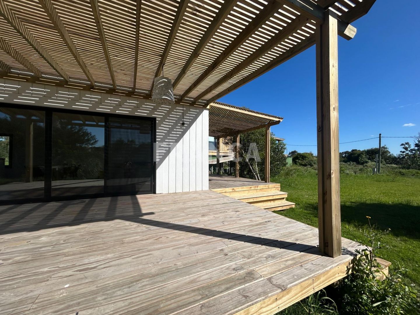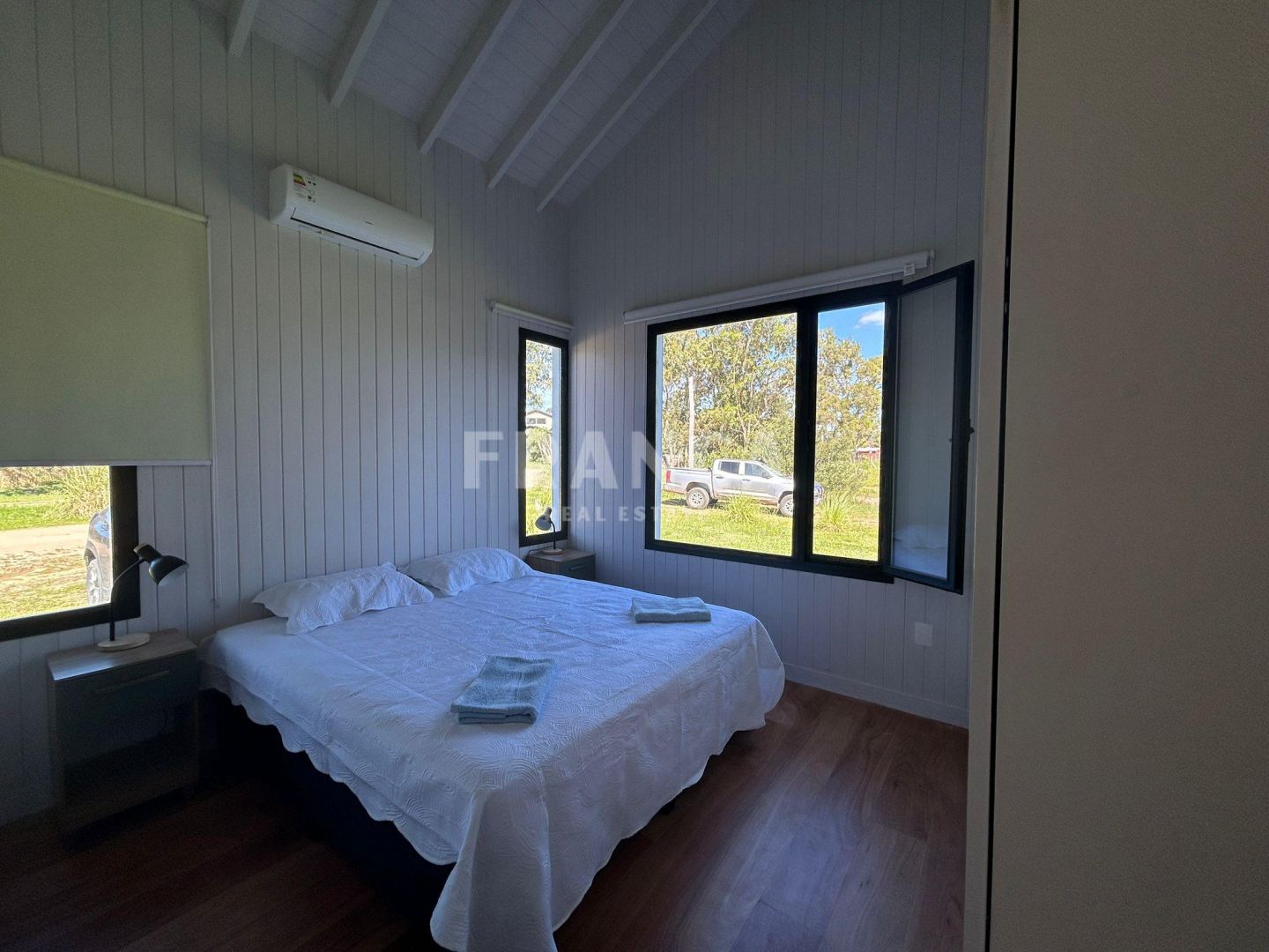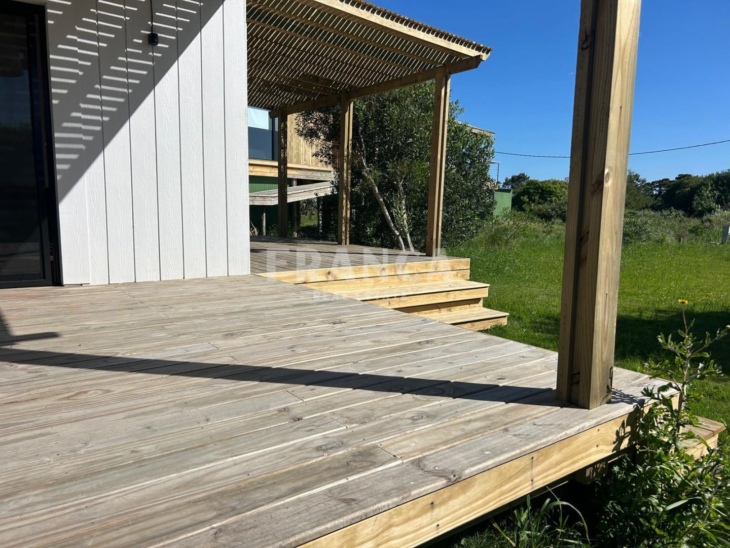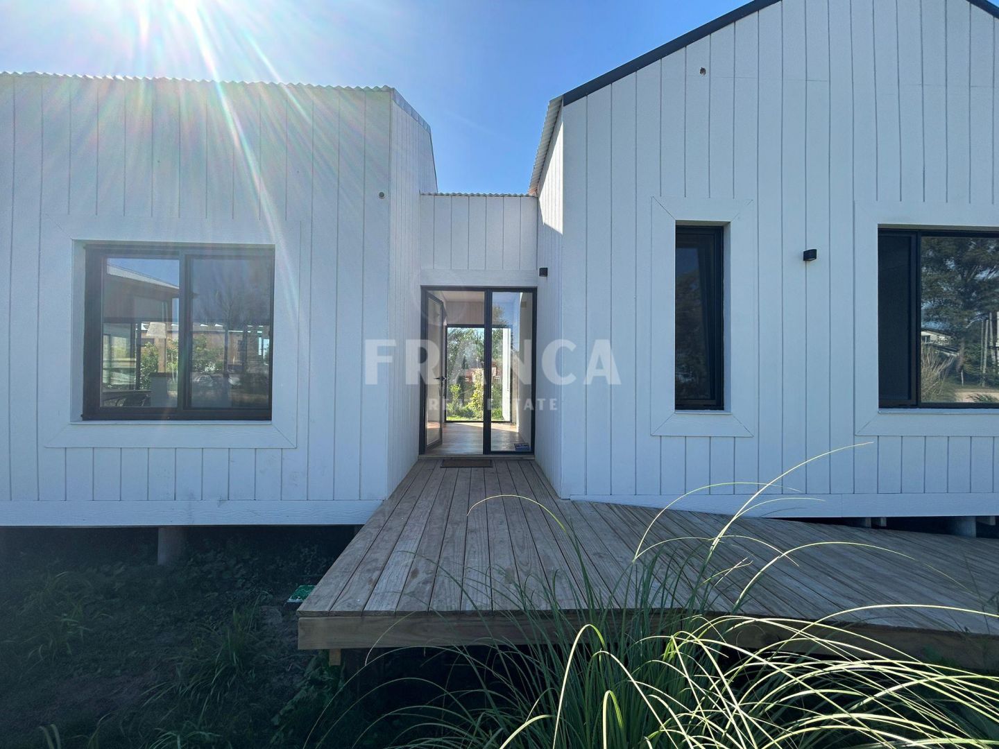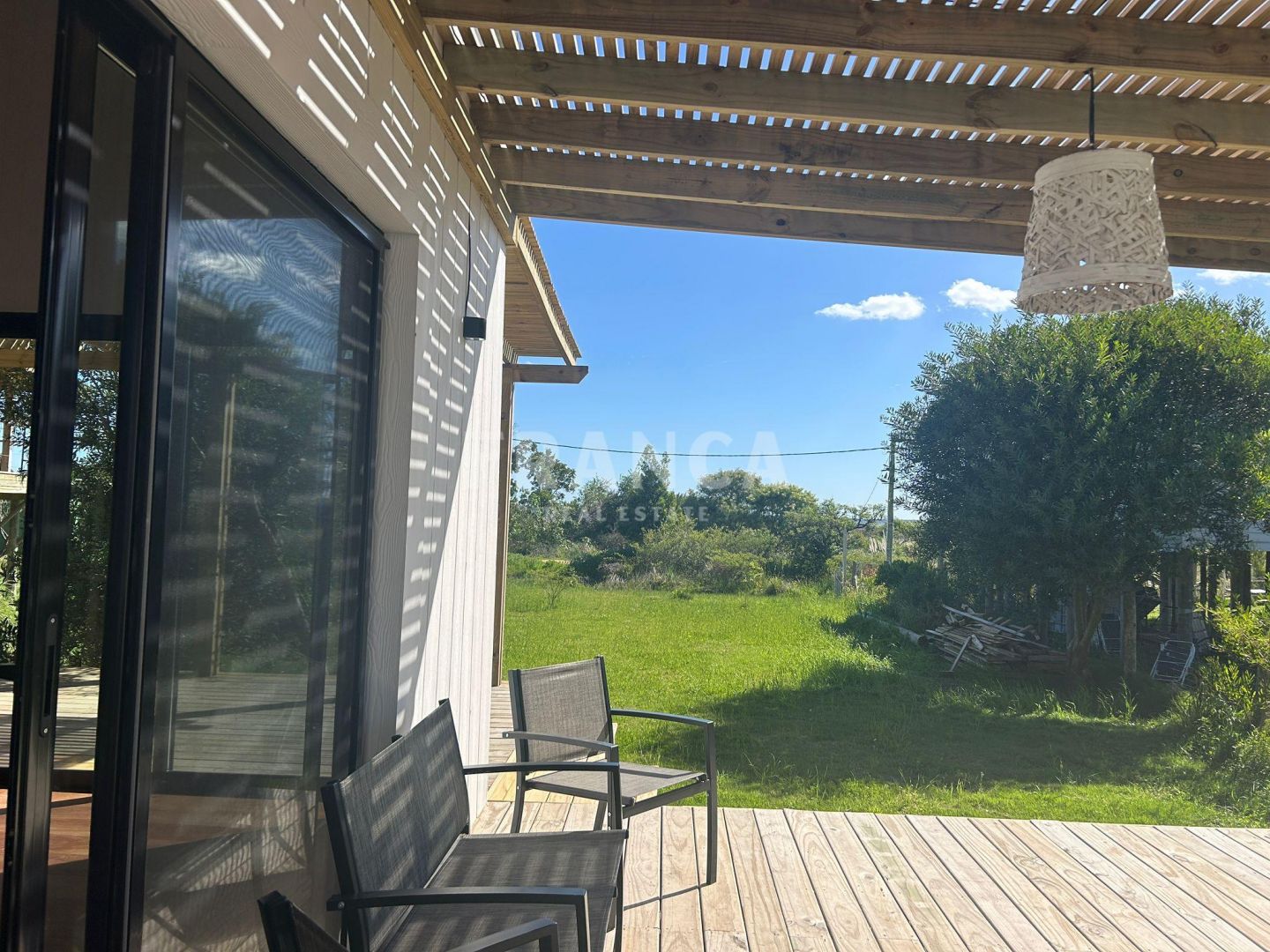 Ubicada sobre un terreno de 850 m²,dentro del fraccionamiento La Escondida. Esta casa combina diseño moderno, eficiencia y calidez. Construida con sistema woodframe y revestida en siding exterior, ofrece 110 m² interiores mas una amplia galería en ?L? de 60 m² semicubierta, ideal para disfrutar del entorno al aire libre.En el interior cuenta con una suite principal, un dormitorio amplio, un cuarto adicional más pequeño y un baño completo que asiste a ambos. El living, comedor y cocina se integran en un mismo ambiente generando un espacio luminoso y funcional.Equipada con aires acondicionados y blackouts en todos los cuartos, esta propiedad ofrece gran confort térmico y acústico.La orientación noroeste garantiza excelente luminosidad natural durante todo el día, haciendo de esta casa una opción cómoda, eficiente y acogedora.