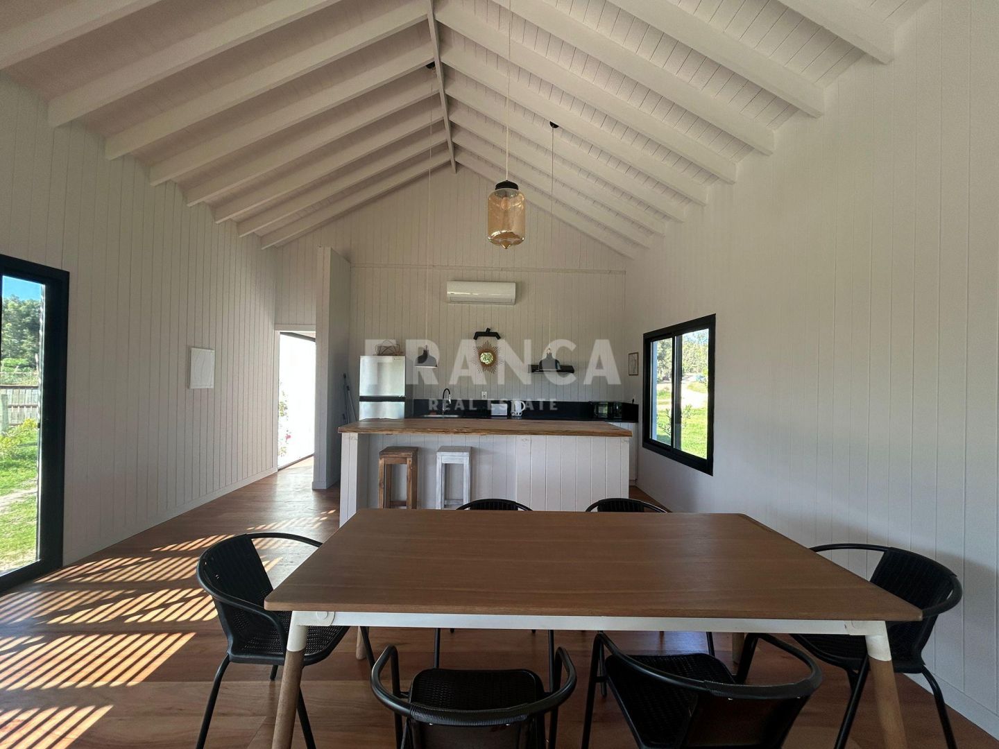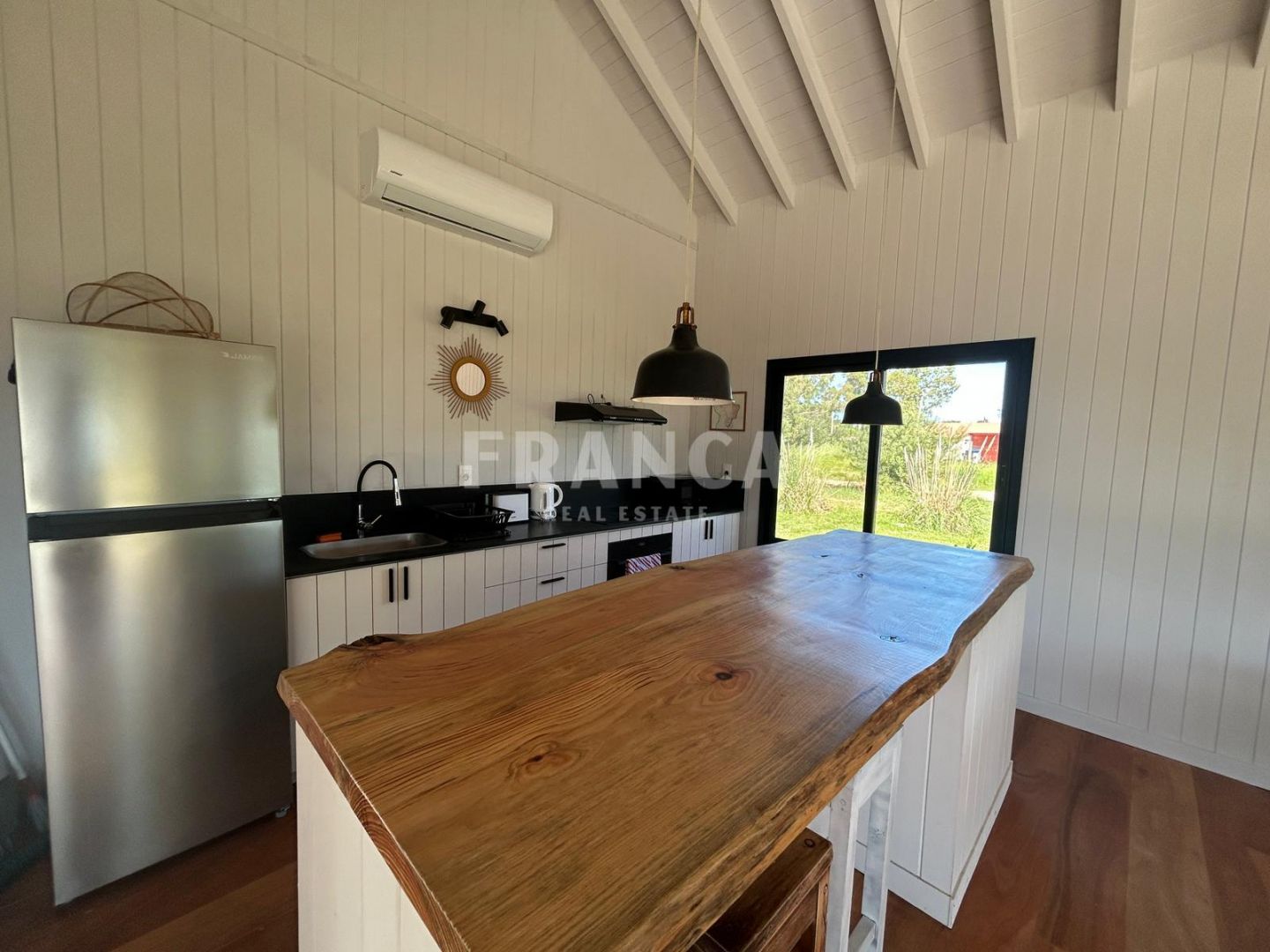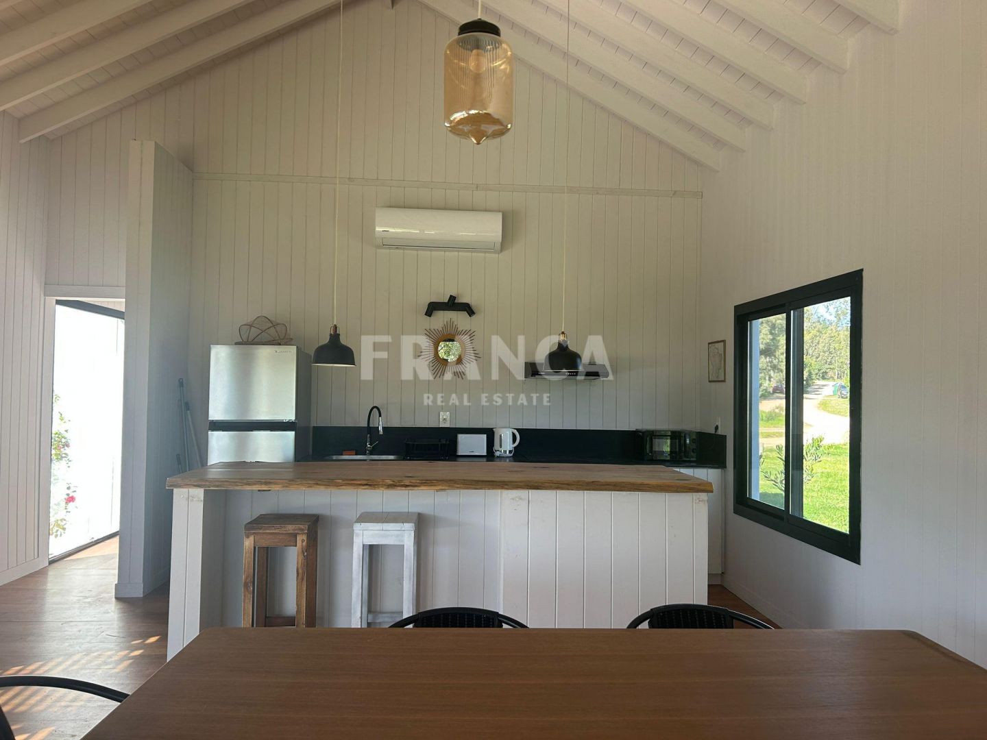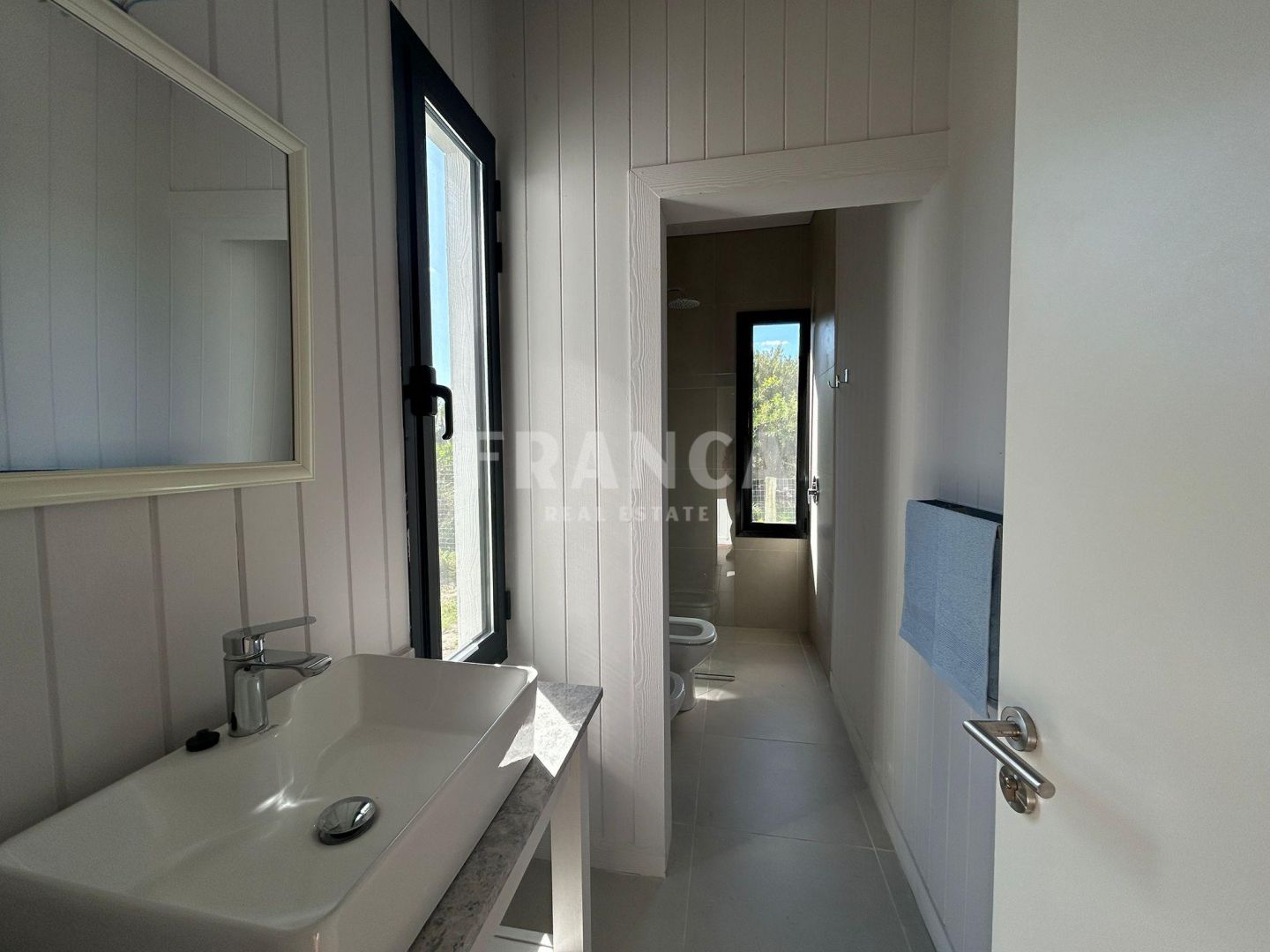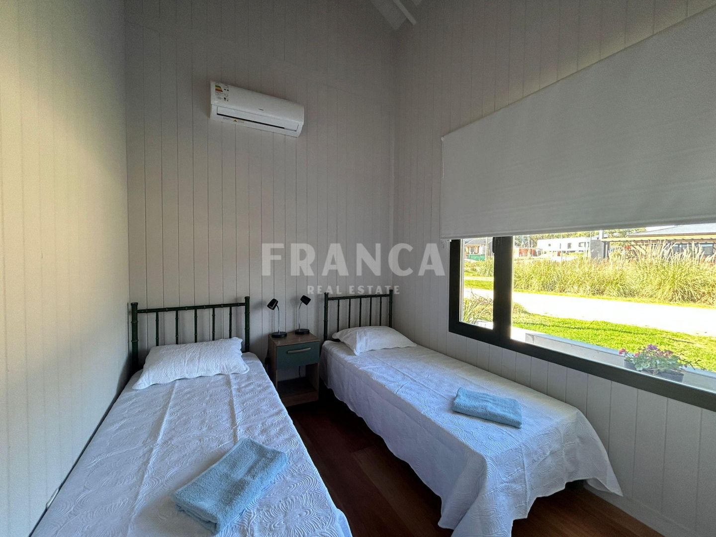 Ubicada sobre un terreno de 850 m²,dentro del fraccionamiento La Escondida. Esta casa combina diseño moderno, eficiencia y calidez. Construida con sistema woodframe y revestida en siding exterior, ofrece 110 m² interiores mas una amplia galería en ?L? de 60 m² semicubierta, ideal para disfrutar del entorno al aire libre.En el interior cuenta con una suite principal, un dormitorio amplio, un cuarto adicional más pequeño y un baño completo que asiste a ambos. El living, comedor y cocina se integran en un mismo ambiente generando un espacio luminoso y funcional.Equipada con aires acondicionados y blackouts en todos los cuartos, esta propiedad ofrece gran confort térmico y acústico.La orientación noroeste garantiza excelente luminosidad natural durante todo el día, haciendo de esta casa una opción cómoda, eficiente y acogedora.