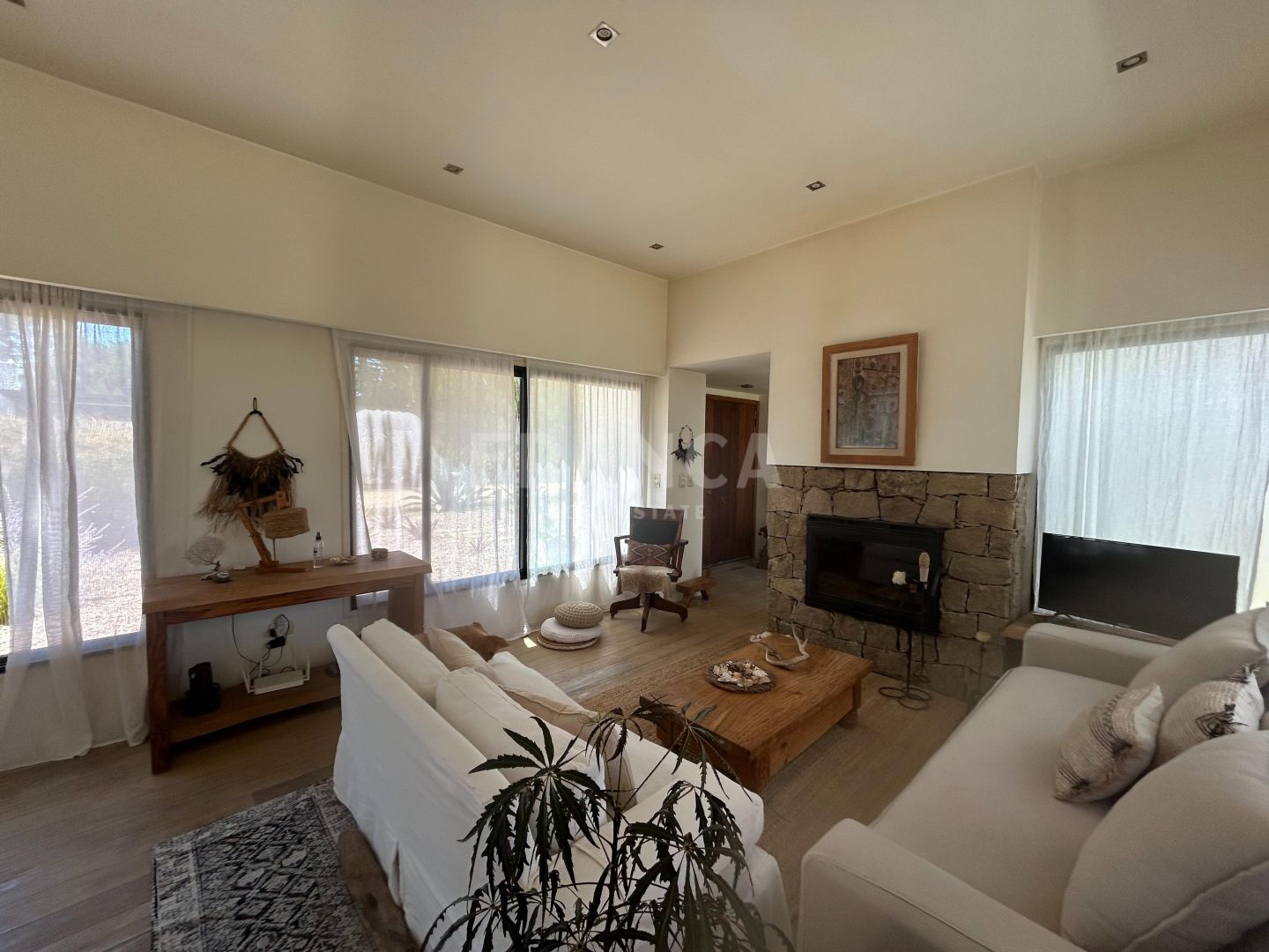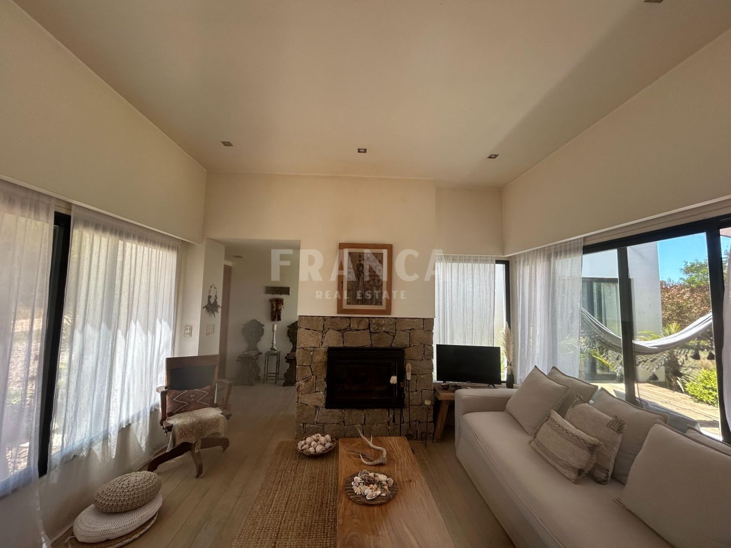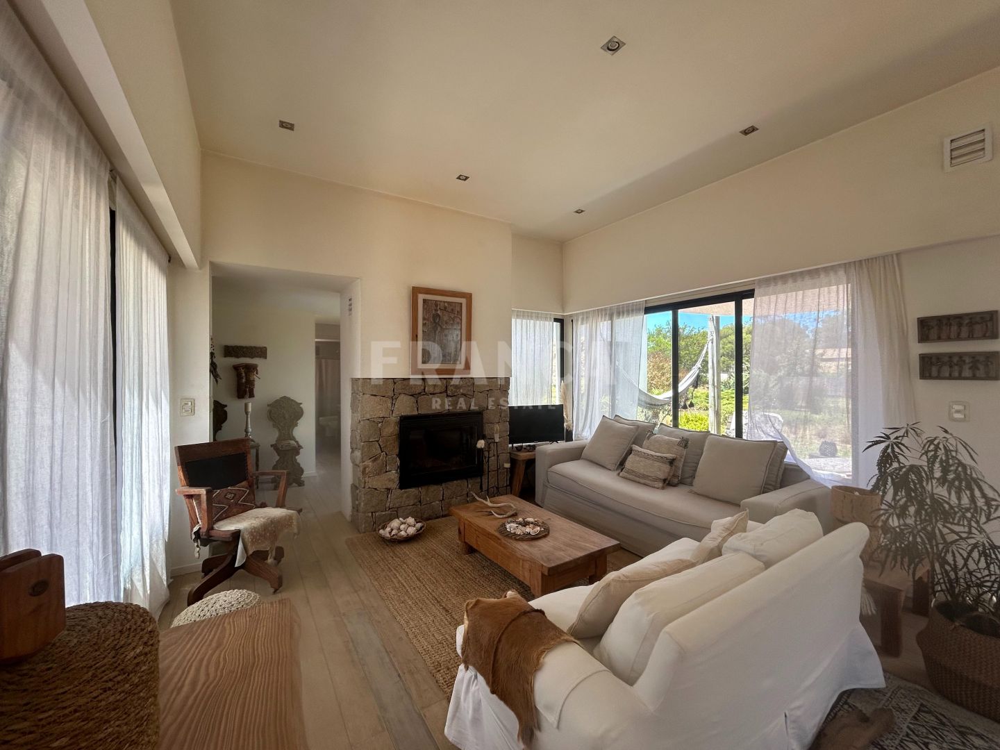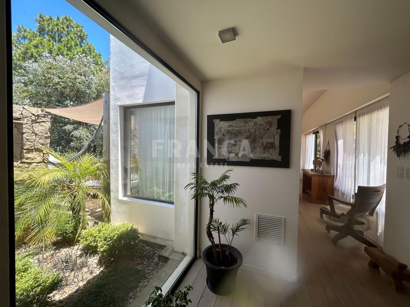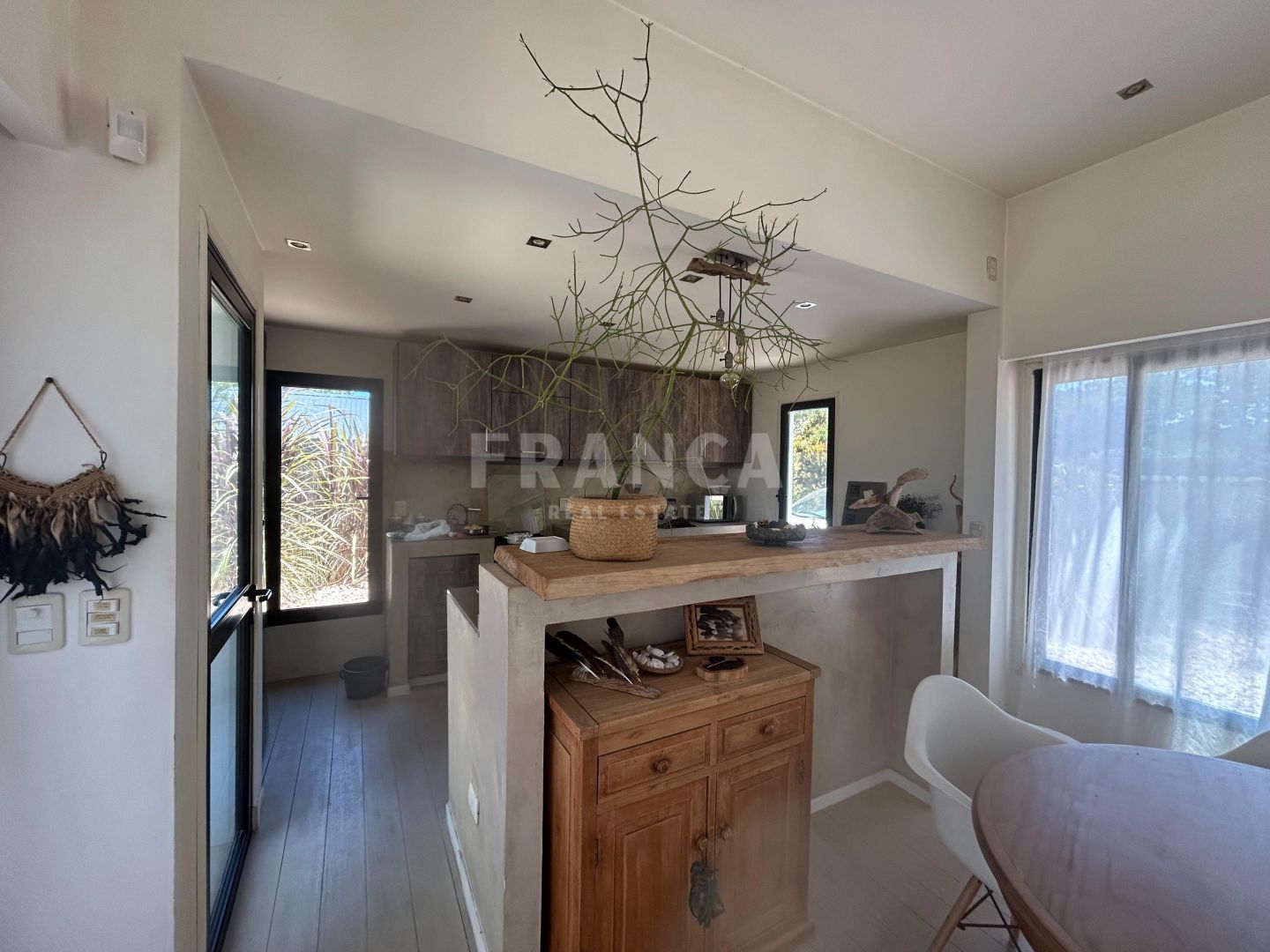 Venta de Casa en La Barra.Ubicada en zona residencial de La Barra, a pocas cuadras del mar y rodeada de bosque se encuentra esta moderna propiedad de 110 m2 construida en Steel Frame desarrollada en un terreno de 1192 m2 con un hermoso jardín.Moderna, acogedora y luminosa residencia con todo el confort para tu relax y diversión. Cuenta con aberturas DVH y mosquiteros además de ser super térmica y con orientación norte ideal para residencia permanente. La casa cuenta con un área social de living comedor con cocina integrada super equipada con todas las comodidades necesarias. y estufa a leña. Tiene dos suites ademas de toilette. Además de riego y pozo de agua.Detalles de decoración de estilo y ambientes relajados completan esta casa de espacios abiertos. En el entorno de un gran jardín los espacios exteriores se funden con la casa. Cuenta con parrillero exterior en galería. Muy buena construcción.