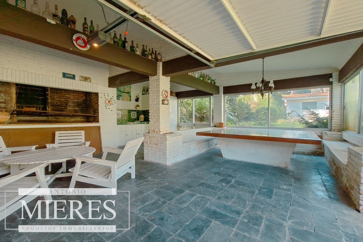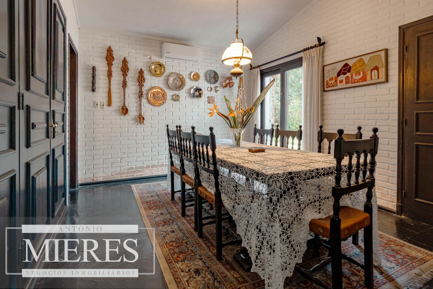 Detalles constructivos: muros de ladrillo, pisos de piedra laja y aberturas originales que le otorgan carácter y calidez.