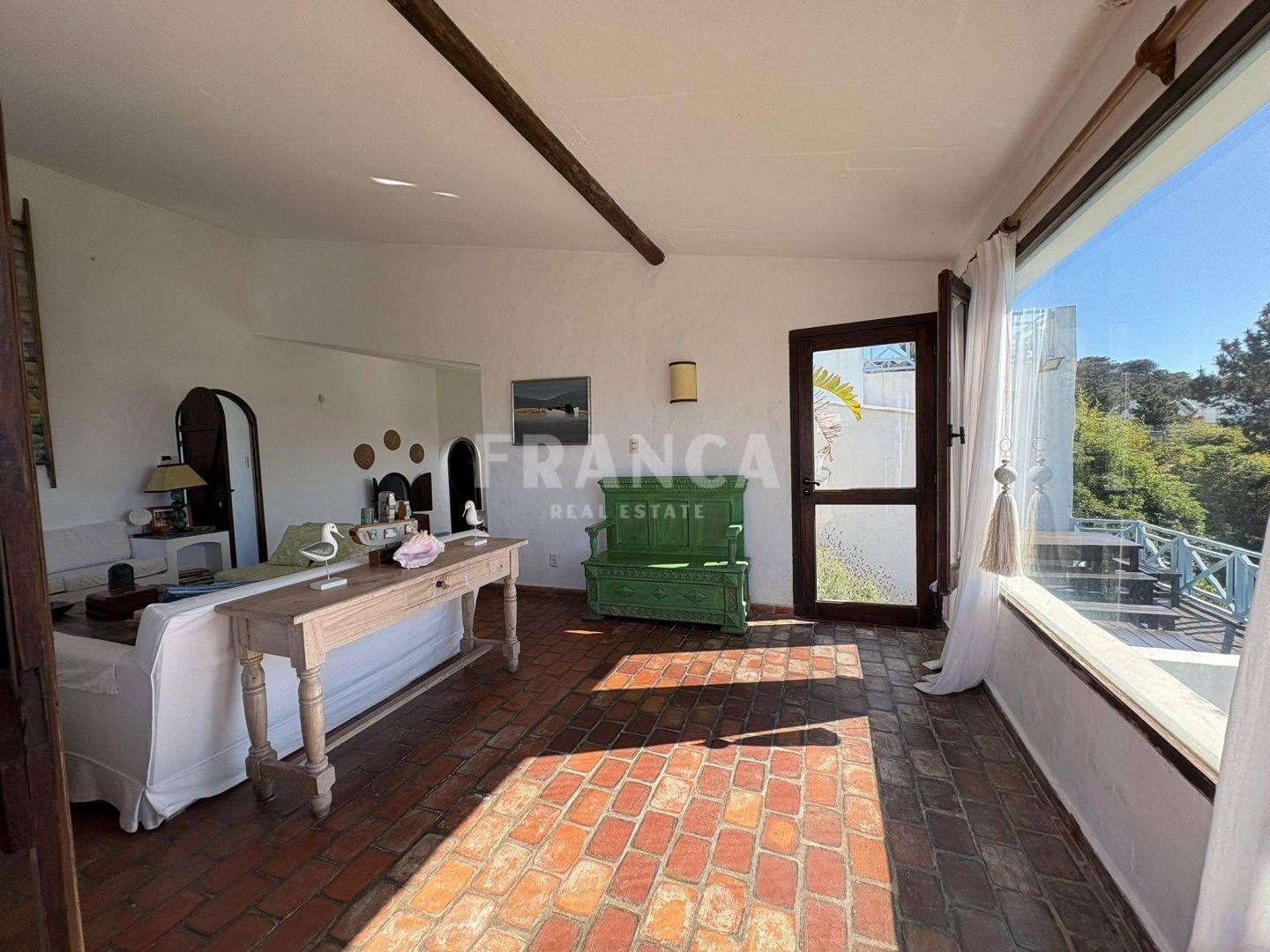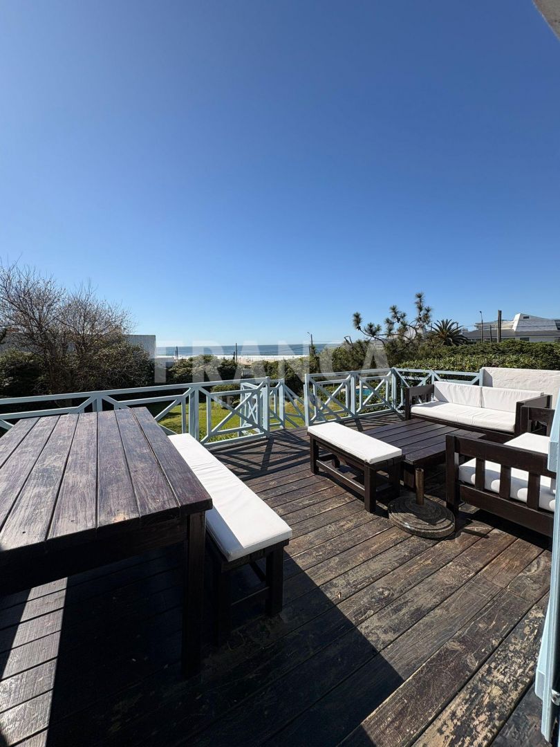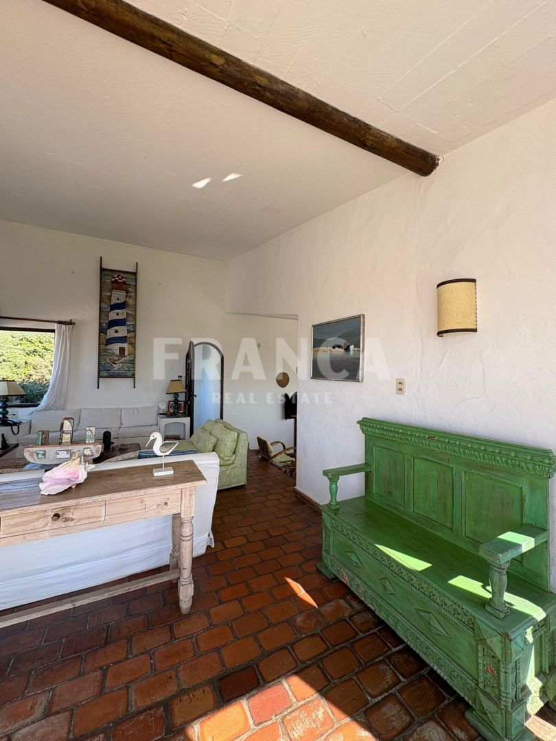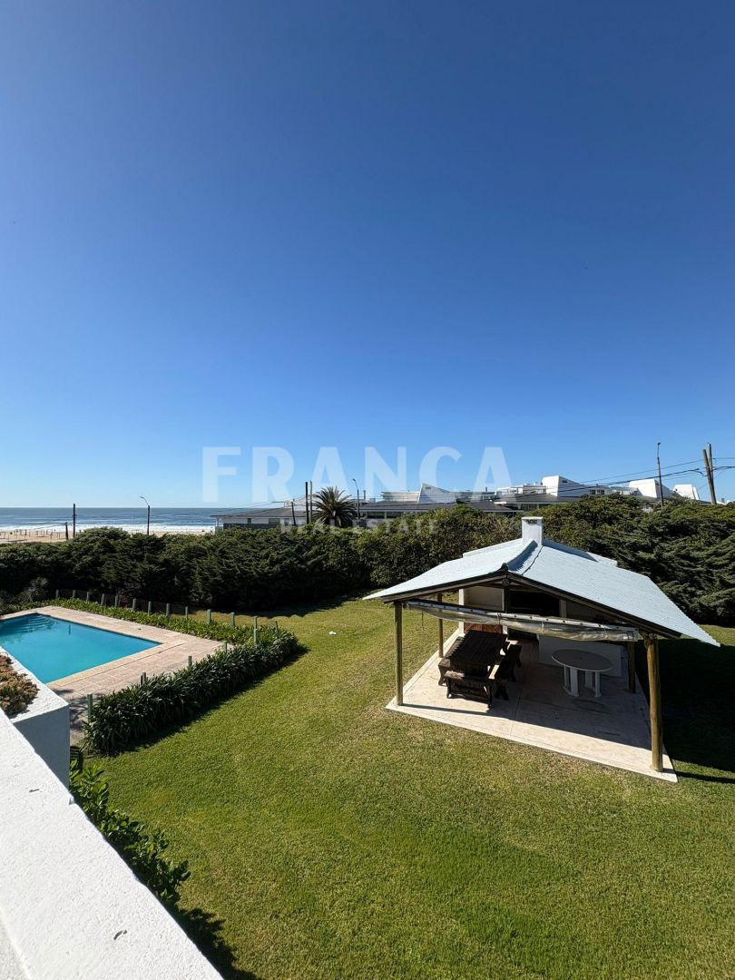 Una casa única ubicada en la zona exclusiva de Montoya, La Barra (Maldonado, Uruguay). Está erguida sobre un terreno amplio de 1.730 m², en altura, lo que le proporciona vistas privilegiadas al mar y convierte el entorno en un jardín natural donde playa y paisaje se integran armoniosamente.Distribuida en tres plantas, cuenta con 4 dormitorios, varios ambientes sociales amplios (living, comedor, estar / sala de TV, comedor diario), cocina independiente, dependencia de servicio con baño, lavadero y un elegante playroom o sala de juegos.La casa combina amplitud, estilo y buena calidad constructiva, ideal para familias o grupos numerosos (capacidad estimada para unas 9 personas).En el exterior destaca un jardín cuidado, piscina y un parrillero techado junto a la pileta, un espacio ideal para reuniones o disfrute al aire libre.La orientación principal es hacia el este, y se encuentra a tan solo unos 50 metros del mar, lo que refuerza su atractivo costero y la convierte en una residencia donde el entorno natural cobra protagonismo