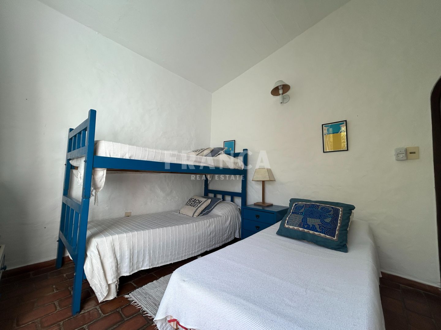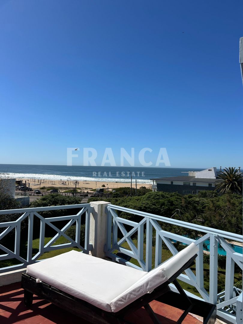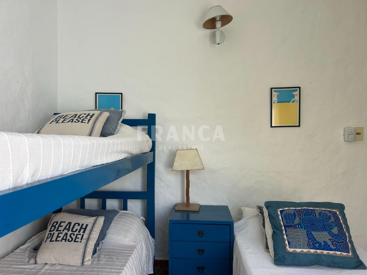 Una casa única ubicada en la zona exclusiva de Montoya, La Barra (Maldonado, Uruguay). Está erguida sobre un terreno amplio de 1.730 m², en altura, lo que le proporciona vistas privilegiadas al mar y convierte el entorno en un jardín natural donde playa y paisaje se integran armoniosamente.Distribuida en tres plantas, cuenta con 4 dormitorios, varios ambientes sociales amplios (living, comedor, estar / sala de TV, comedor diario), cocina independiente, dependencia de servicio con baño, lavadero y un elegante playroom o sala de juegos.La casa combina amplitud, estilo y buena calidad constructiva, ideal para familias o grupos numerosos (capacidad estimada para unas 9 personas).En el exterior destaca un jardín cuidado, piscina y un parrillero techado junto a la pileta, un espacio ideal para reuniones o disfrute al aire libre.La orientación principal es hacia el este, y se encuentra a tan solo unos 50 metros del mar, lo que refuerza su atractivo costero y la convierte en una residencia donde el entorno natural cobra protagonismo