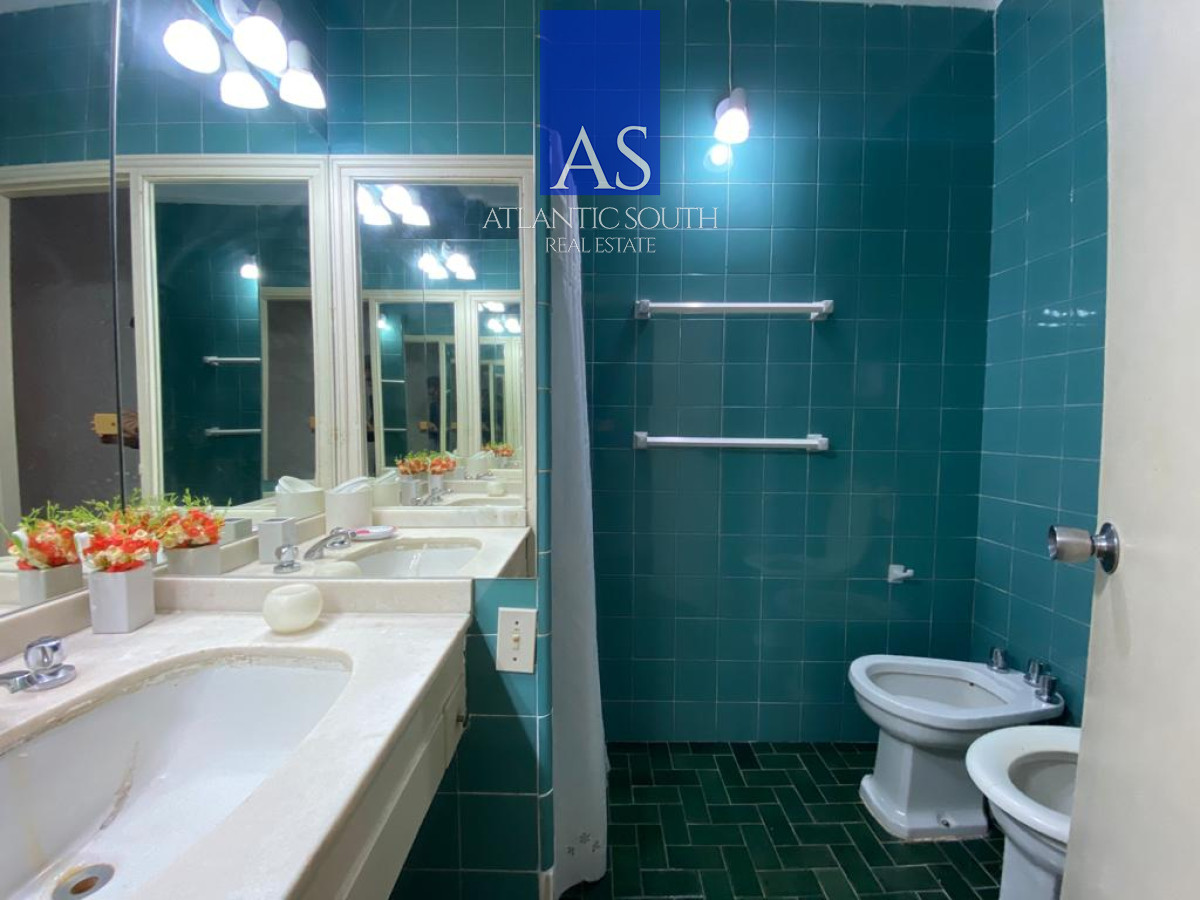 A la derecha hay un pasillo con un dormitorio con cama matrimonial, un dormitorio con dos camas simples, un baño completo, otro dormitorio con dos camas simples, segundo baño completo y cuarto dormitorio con baño completo en suite.